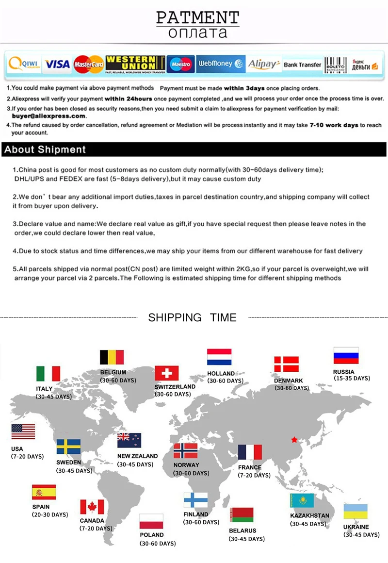 *You can submit refund requests within 15 days after the guaranteed period for delivery (45 days) has expired. You can do it by sending a message on Contact Us page