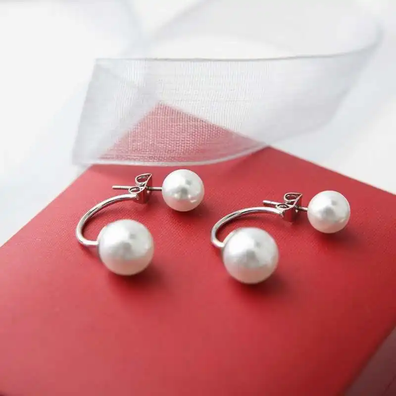 Simulated Pearl Earrings Stud Fashion Jewelry Gift Ball Double Side Crystal Earrings Women Girl’s Earing