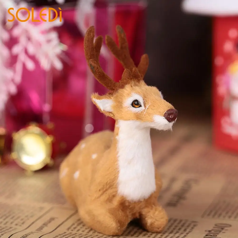 Simulation ELK Deer Xmas Elk Lying Deer Lawn Ornaments Plush Plastic Mini Christmas Reindeer Beautiful New Year