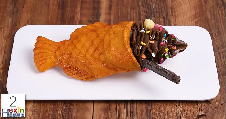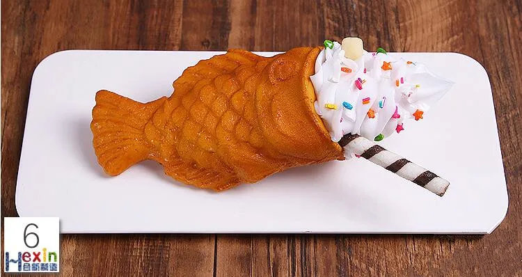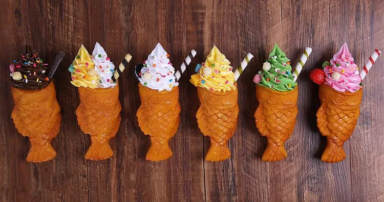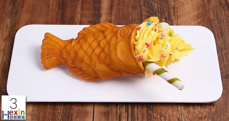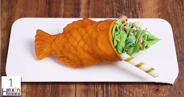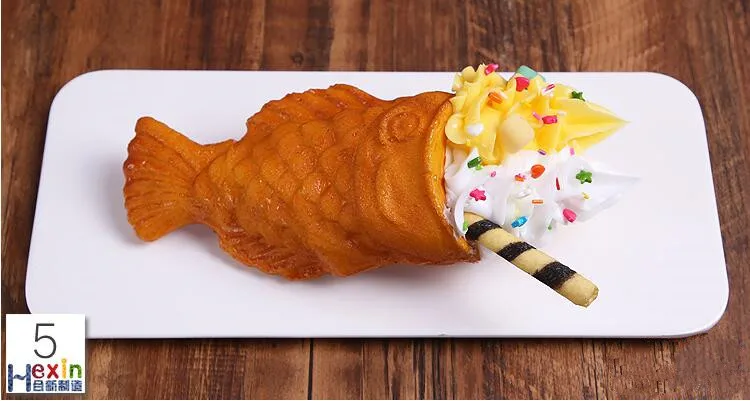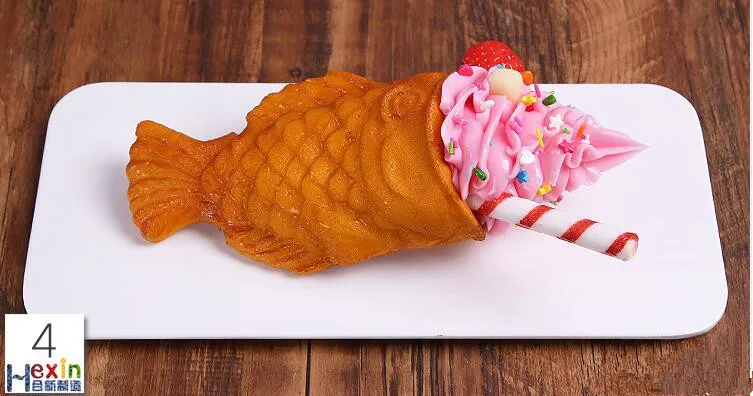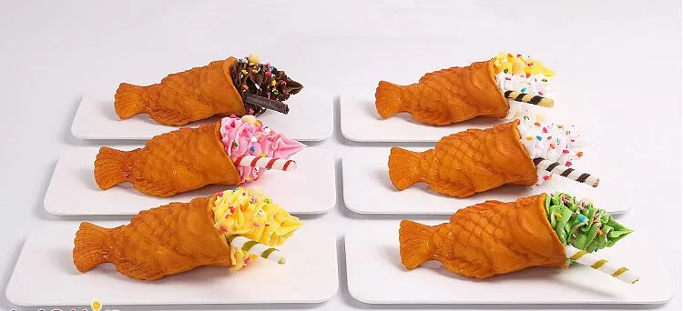 Simulation Ice Cream Fish Waffle Sample;Food salmon ice cream model;Chocolate Matcha Cone;Fake Ice cream props fish taiyaki
