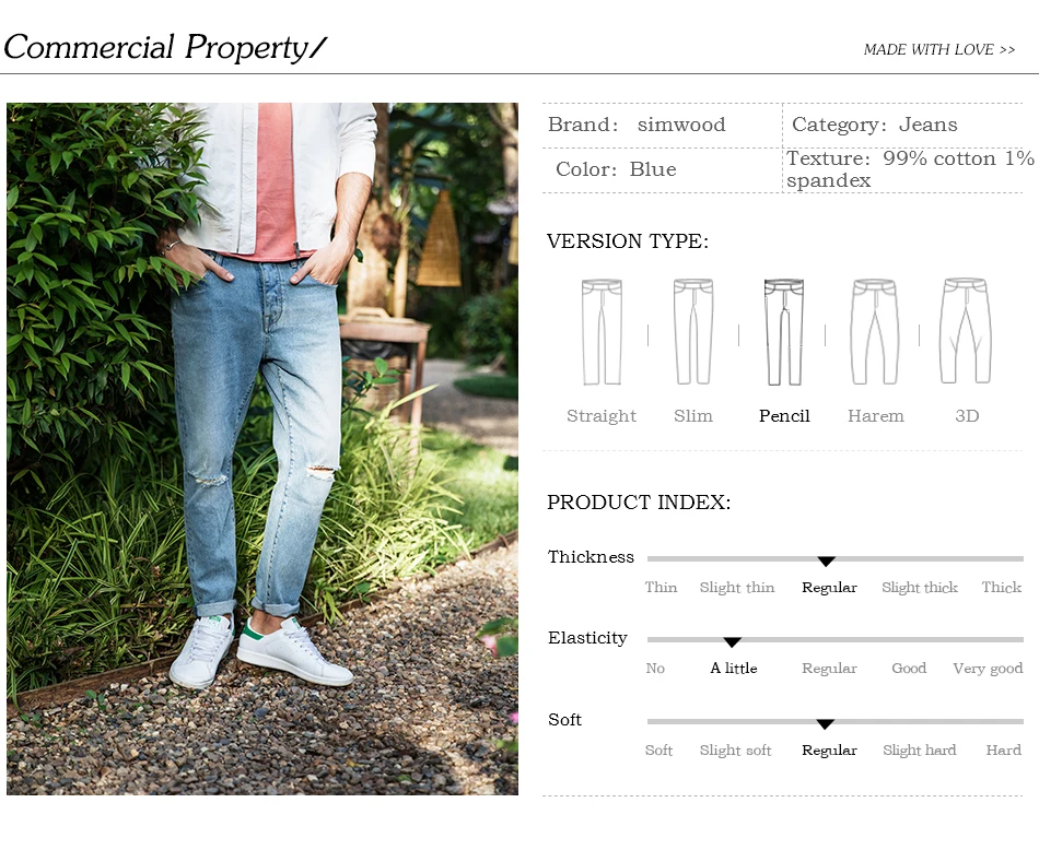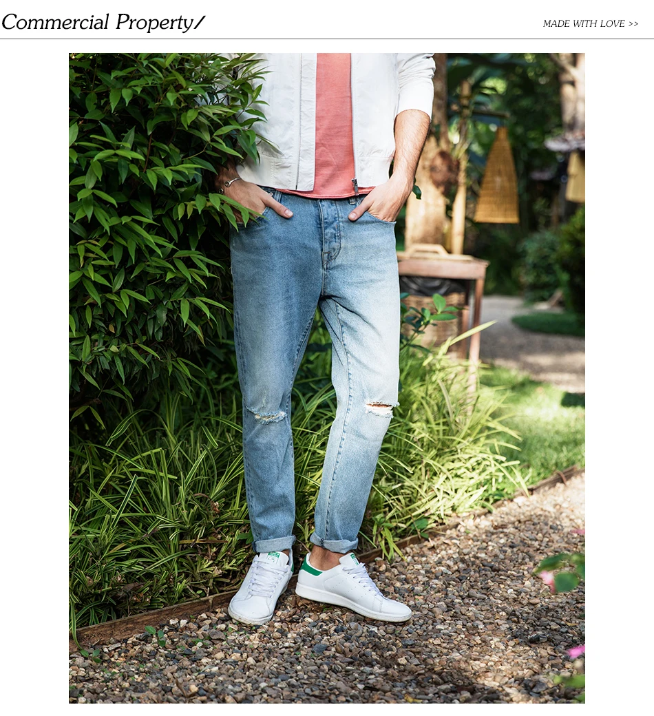 SIMWOOD 2018 Autumn Fashion Hole Jeans Men Ripped Slim Fit Denim Pants Ankle-Length Plus Size Brand Trousers High Quality 180123