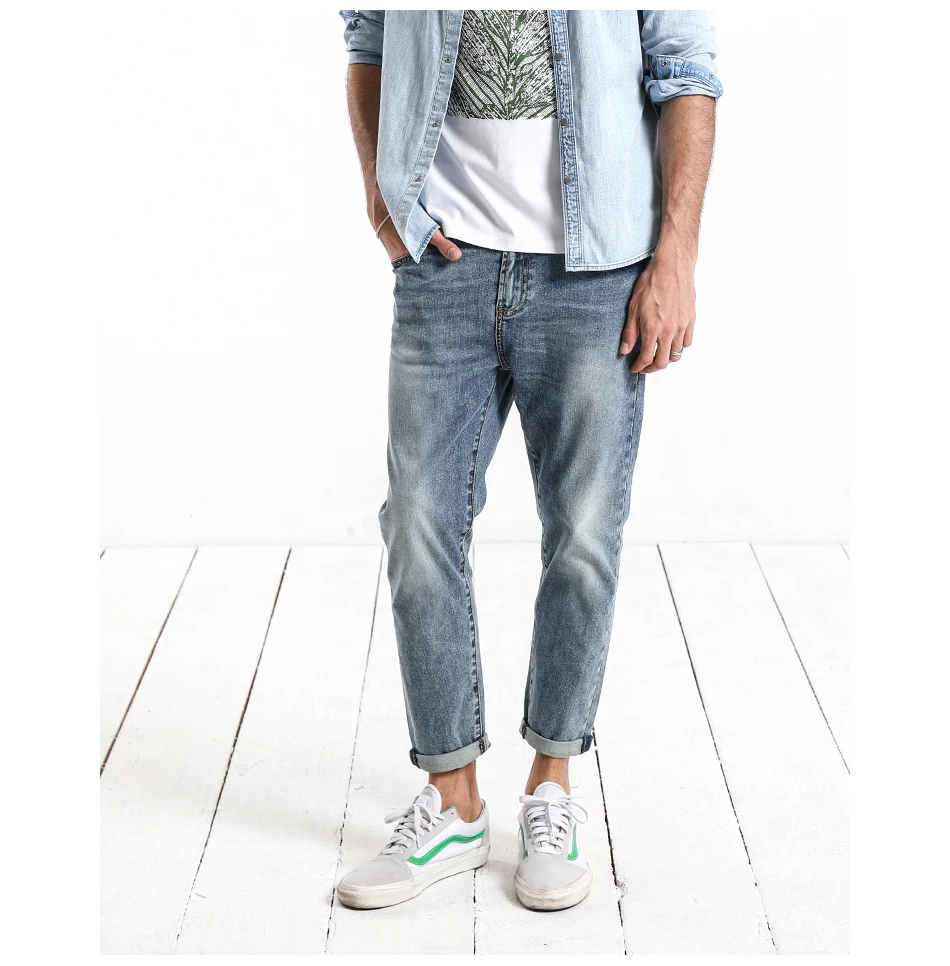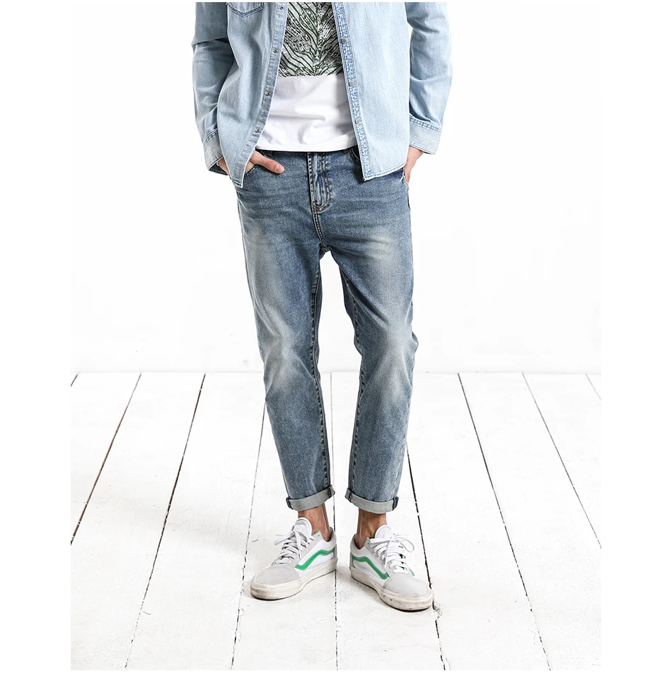 SIMWOOD 2018 Autumn Summer New Dark Wash Ankle-Length Jeans Men Slim Fit Vintage Basic Blue High Quality Brand Clothing 180057
