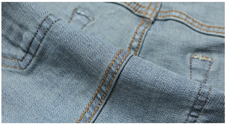 Soft denim fabric and a little elastic,comfortable to wear.