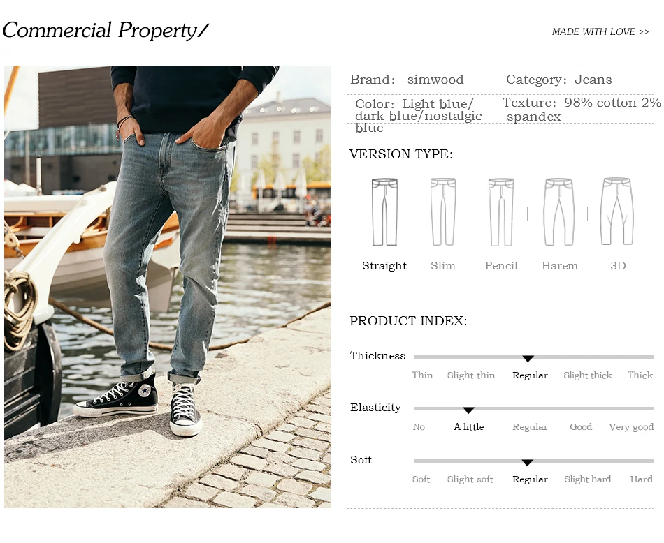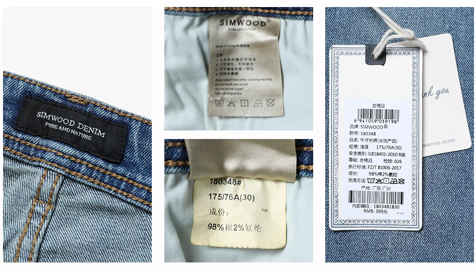 SIMWOOD 2018 New Jeans Men Classical Jean High Quality Straight Leg Male Casual Pants Plus Size Cotton Denim Trousers 180348
