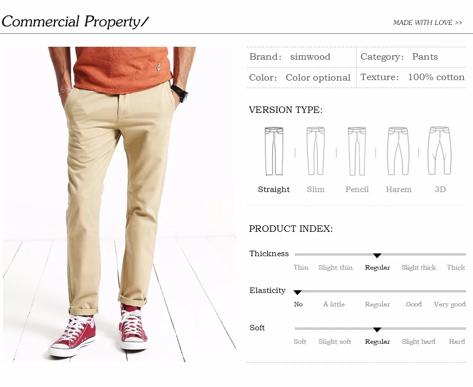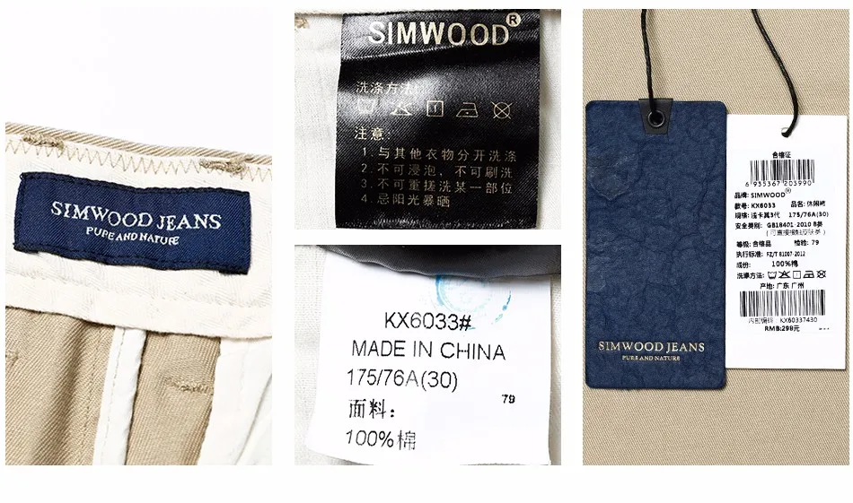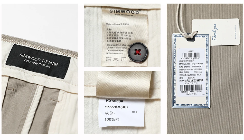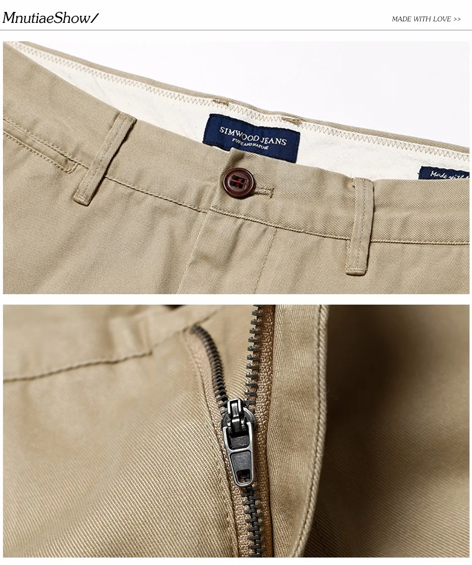 Simwood Brand Spring Winter New Fashion 2018 Slim Straight Men Casual Pants 100% Pure Cotton Man Trousers Plus Size KX6033