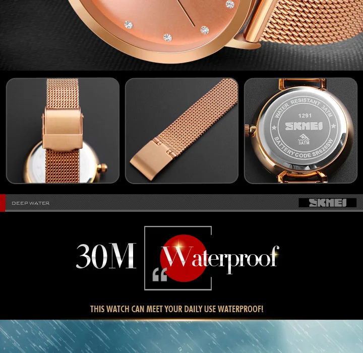 2018 New SKMEI Fashion Women Watches Rose Gold Stainless Steel Bracelet Watch Women Luxury Quartz Wristwatch Female Clock Montre Femme
