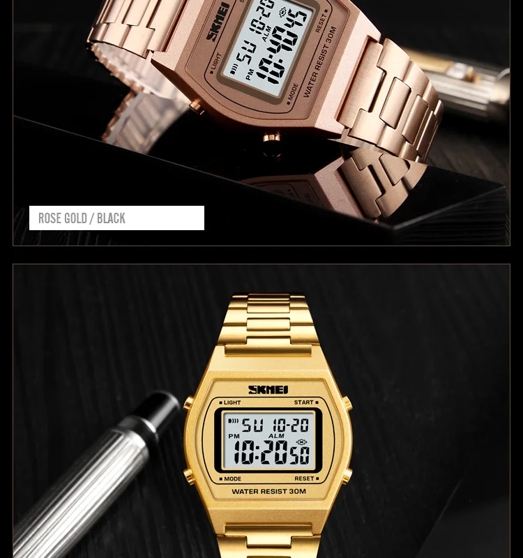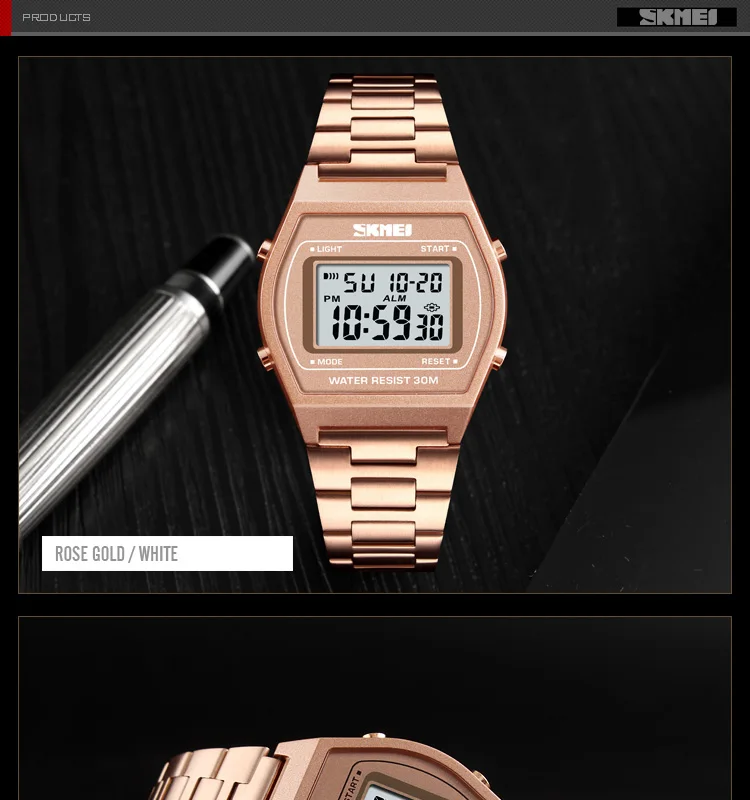 SKMEI Ladies Fashion Watches Outdoor Sport Luxury Alloy Digital Watch Strap Business Relogio12/24 Hours Relogio Feminino Digital