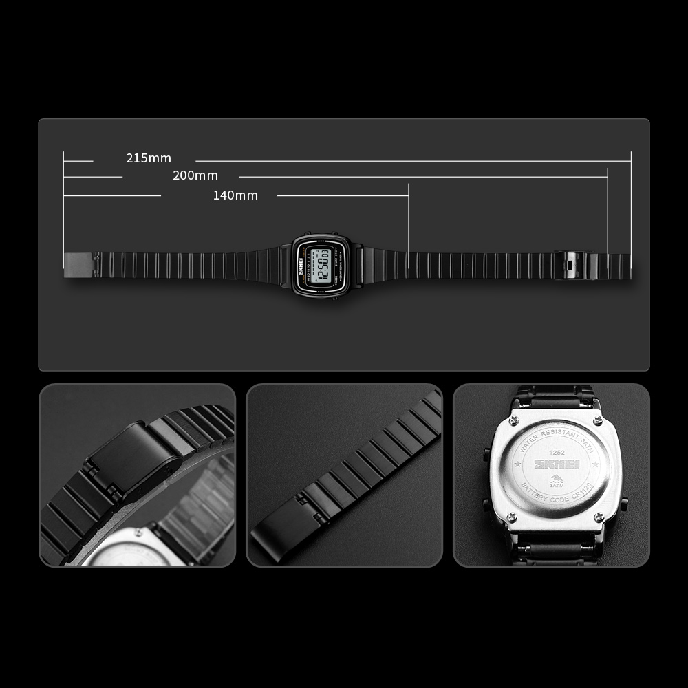 Functions: 3bar Water Resistant, Chronograph, Alarm, 12/24 Hour, Date, Month,Countdown