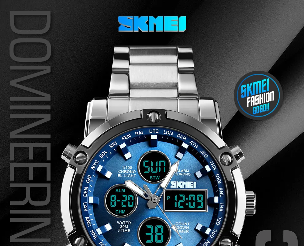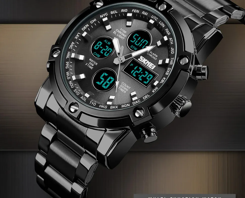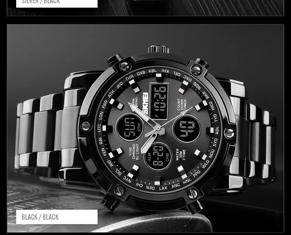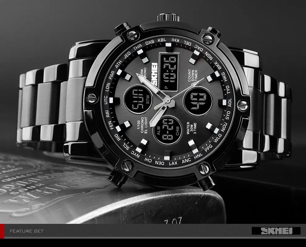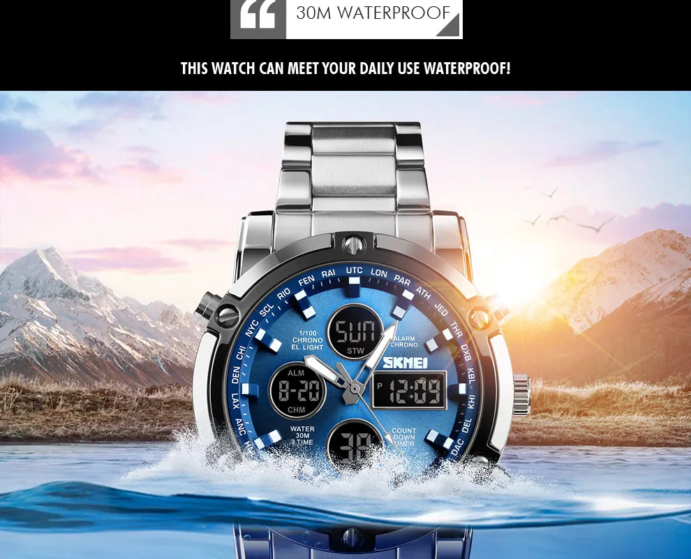 SKMEI Men’s Quartz Watch Luxury Sport Digital Wristwatch Waterproof Stainless Steel Male Watches Clock Relogio Masculino 1389