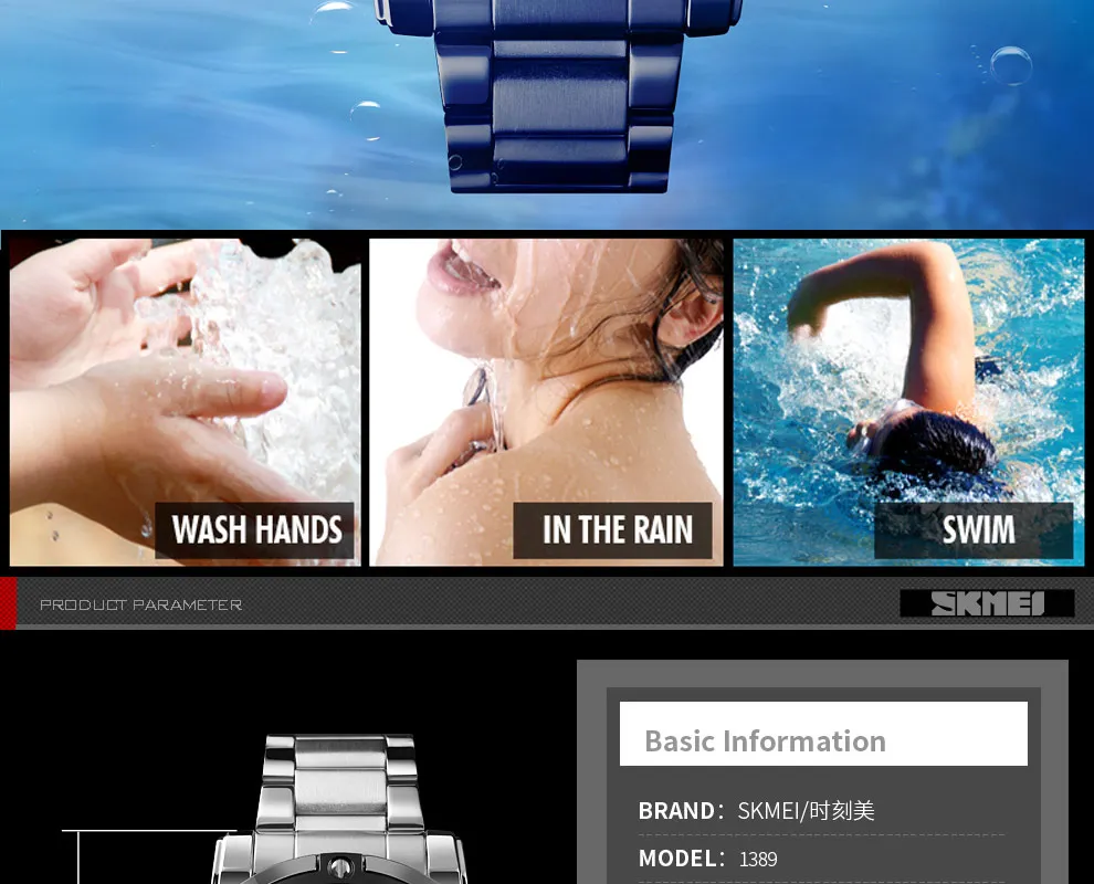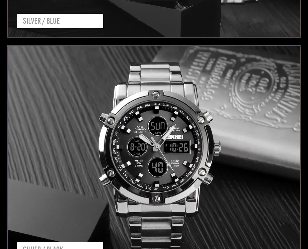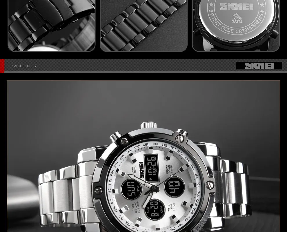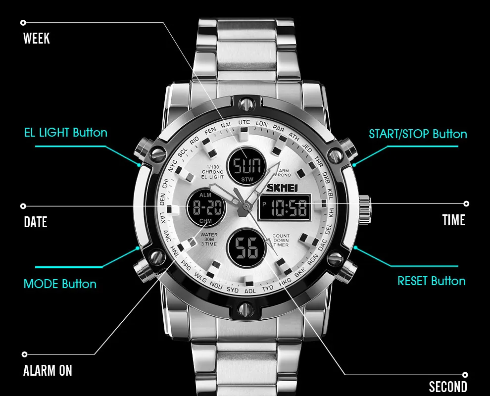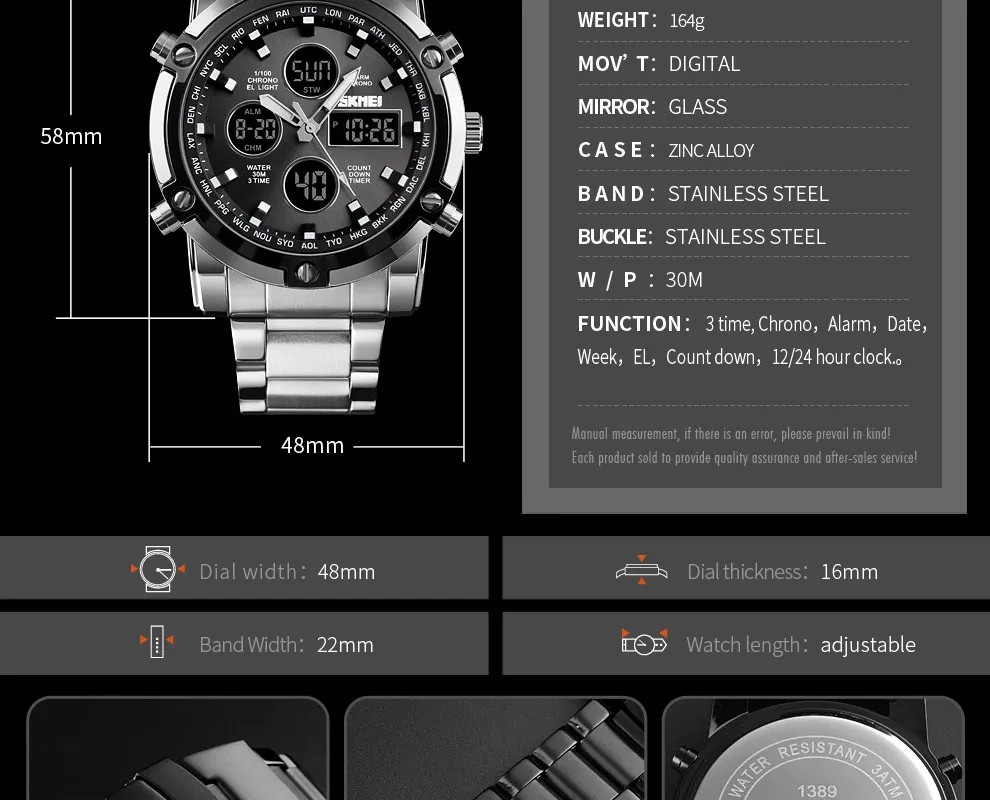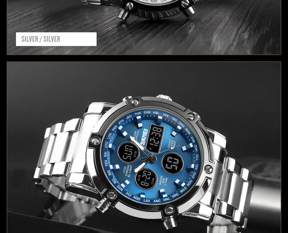 SKMEI Men’s Quartz Watch Luxury Sport Digital Wristwatch Waterproof Stainless Steel Male Watches Clock Relogio Masculino 1389
