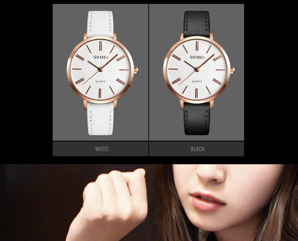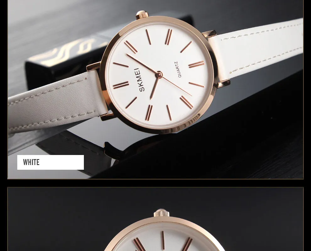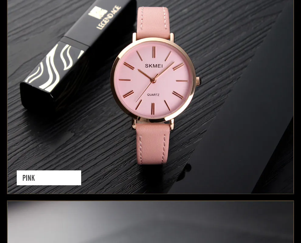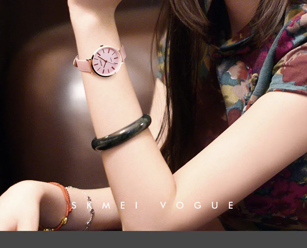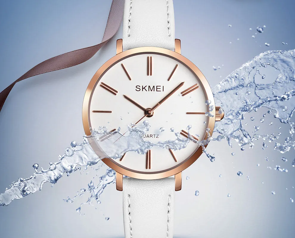 SKMEI Miss Quartz Classic Casual Leather Strap Watch Personality Simple 30 Meter Waterproof Vouge Dress Female Relogio Feminino