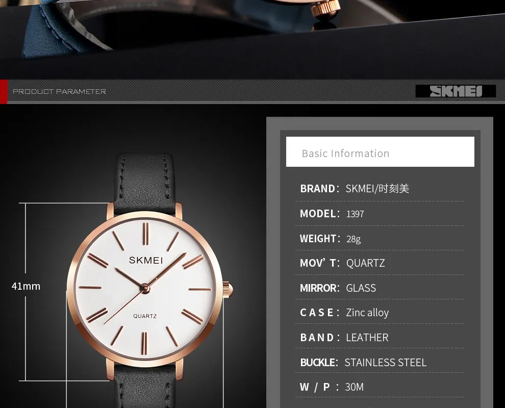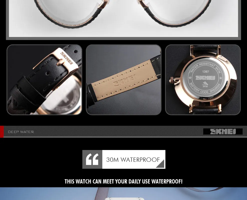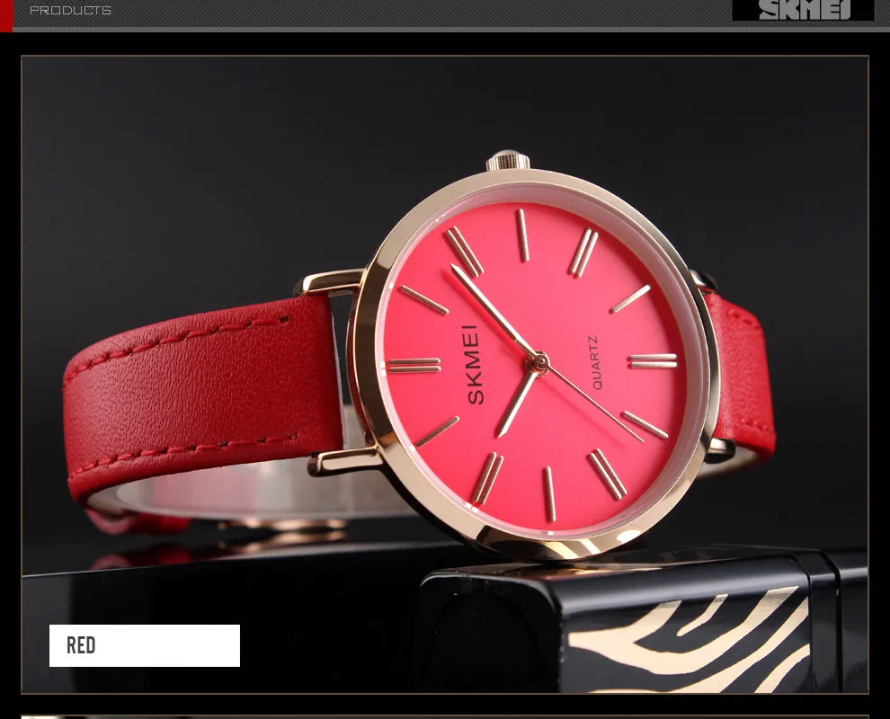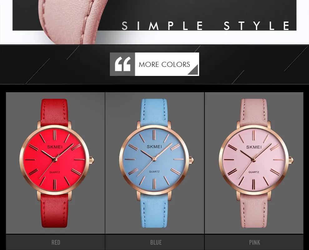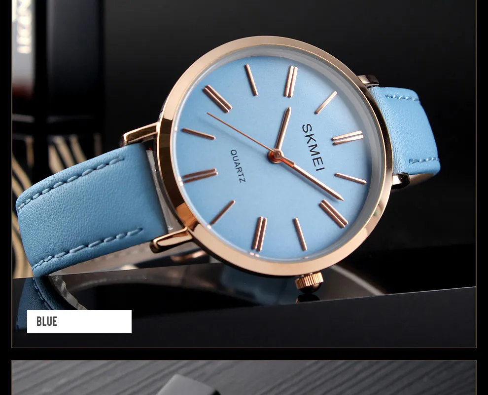 SKMEI Miss Quartz Classic Casual Leather Strap Watch Personality Simple 30 Meter Waterproof Vouge Dress Female Relogio Feminino