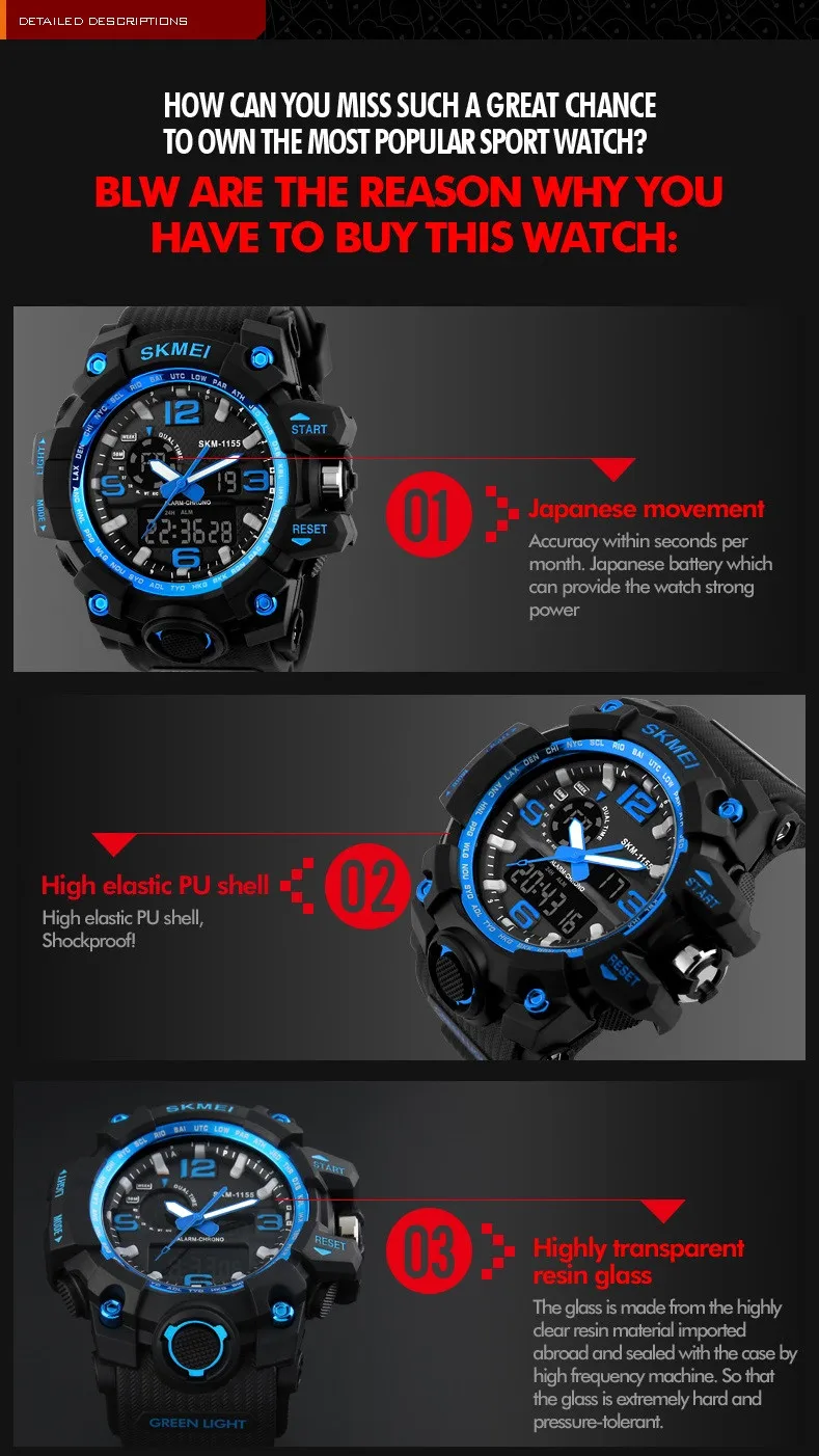 The waterproof depth is up to 50M Waterproor Watch (Please Don\\\’t Press Any Key Underwater)