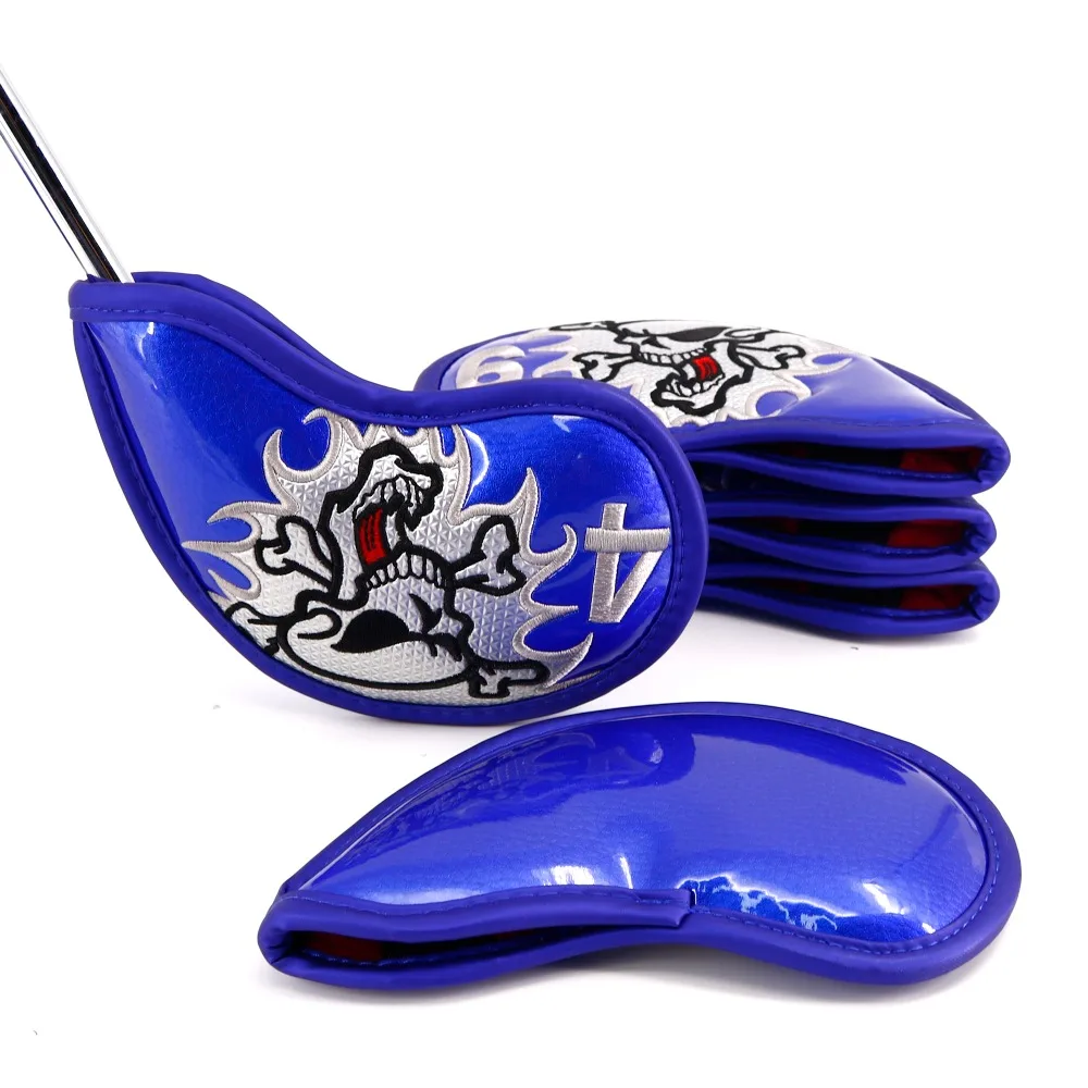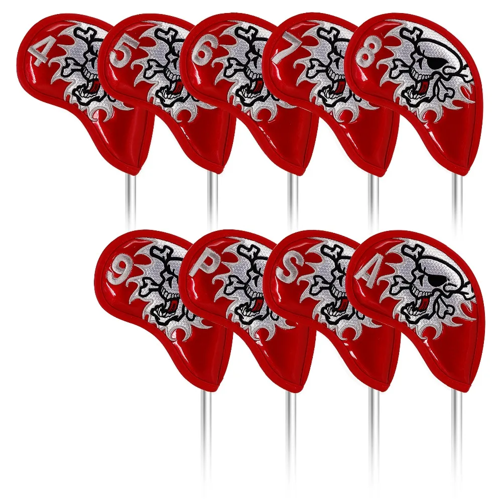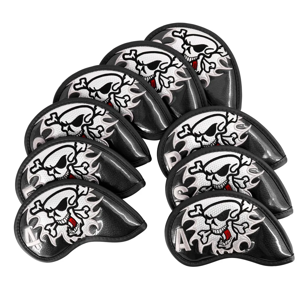 Skull Thick Pu Leather Golf Iron Head Covers Set 9pcs(4-9,A,S,P) Headcover Skull Fit All Brands Free Shipping