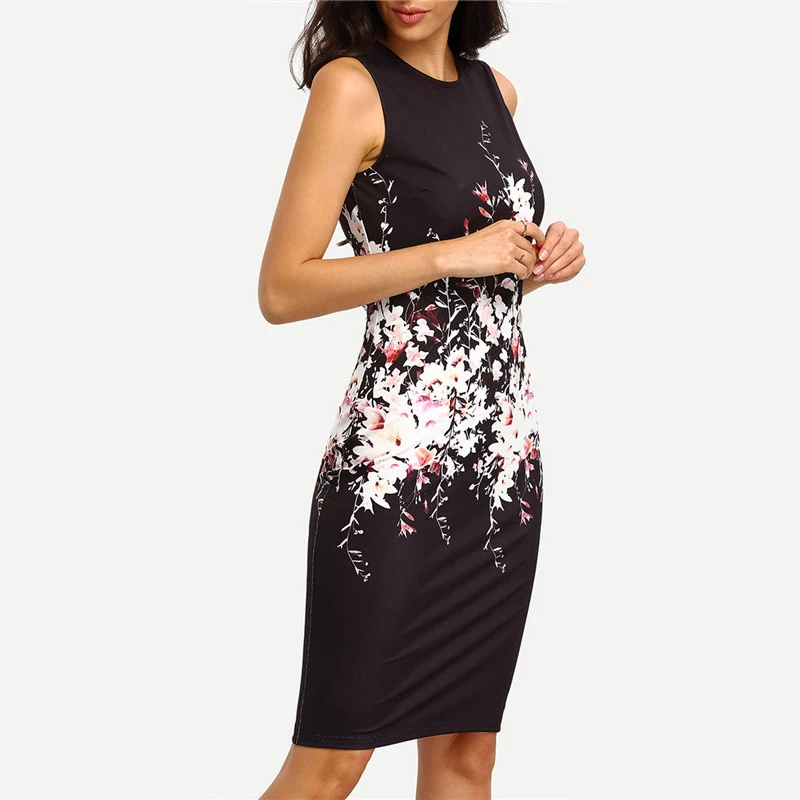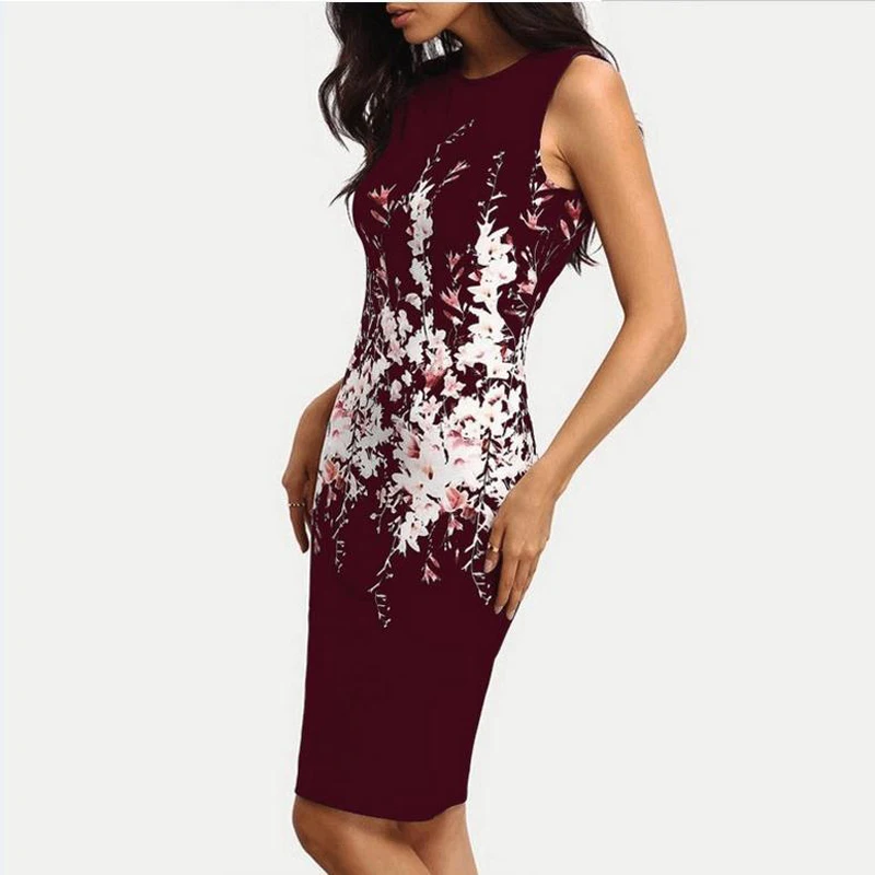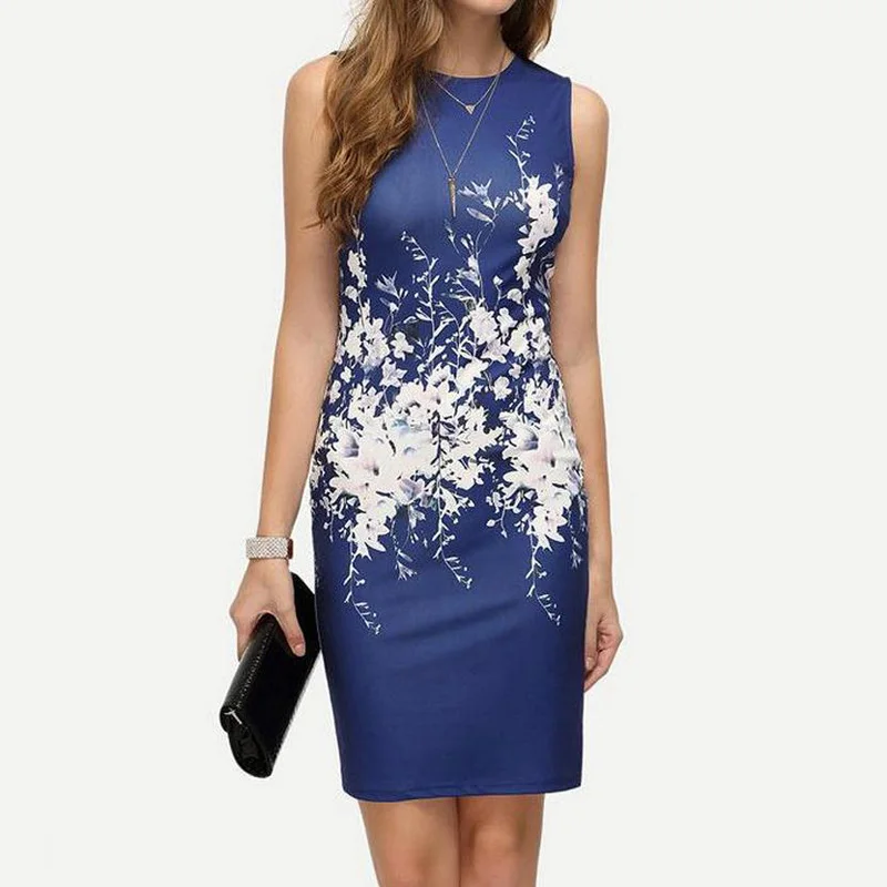 Sleeveless Round Neck Slim Fit Hip Print Dress Fashion New Style Women Dress Casual Robe Femme Ete 2018 Sexy Summer Dress