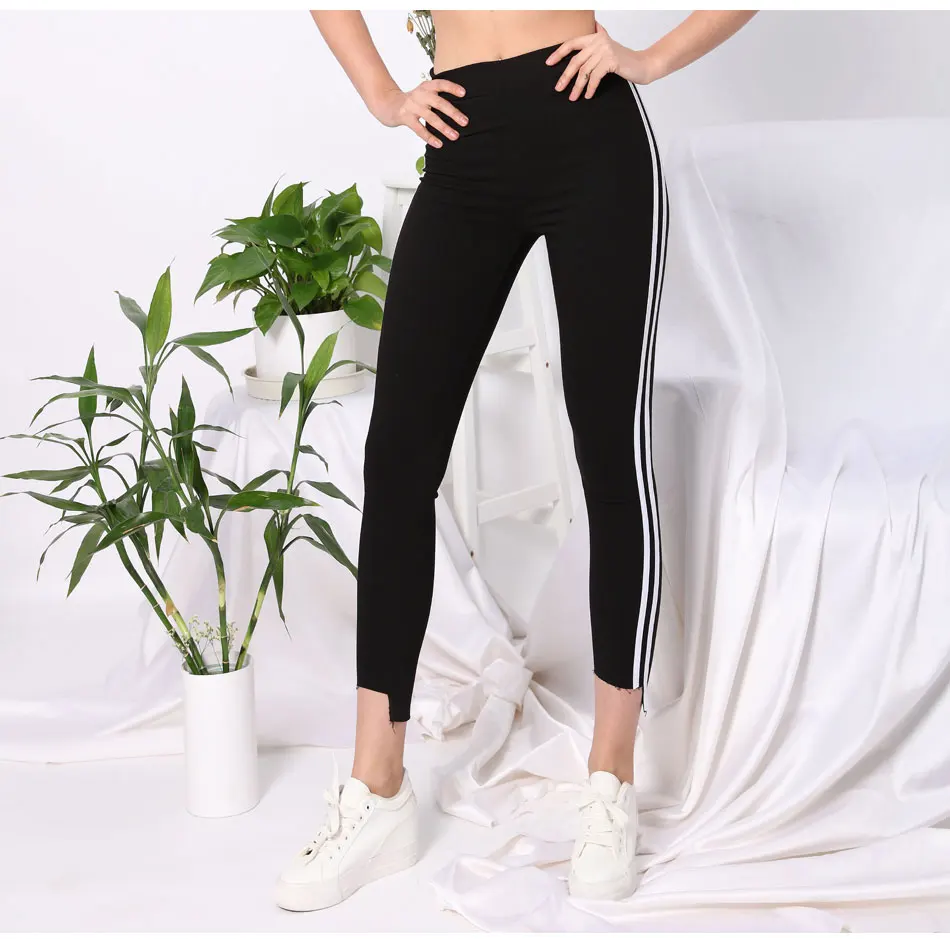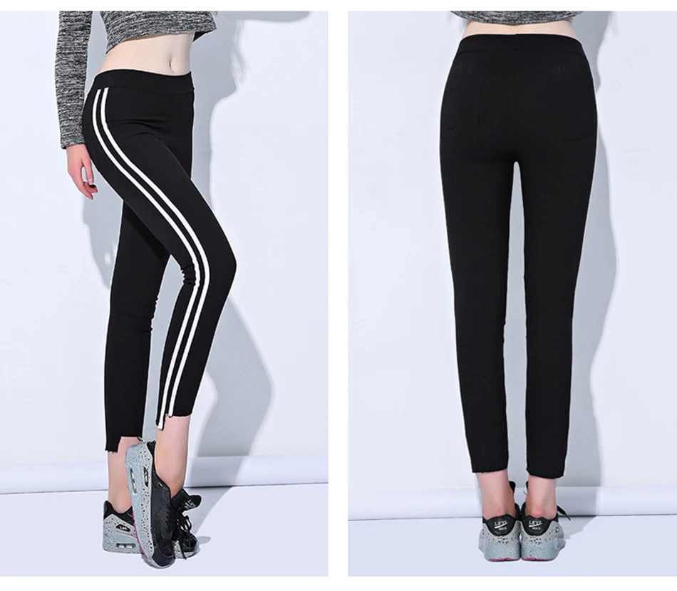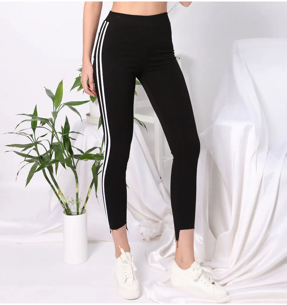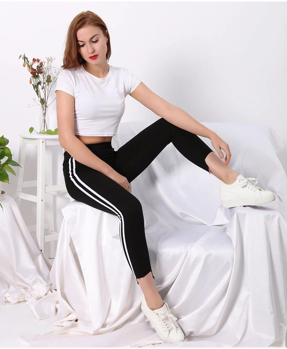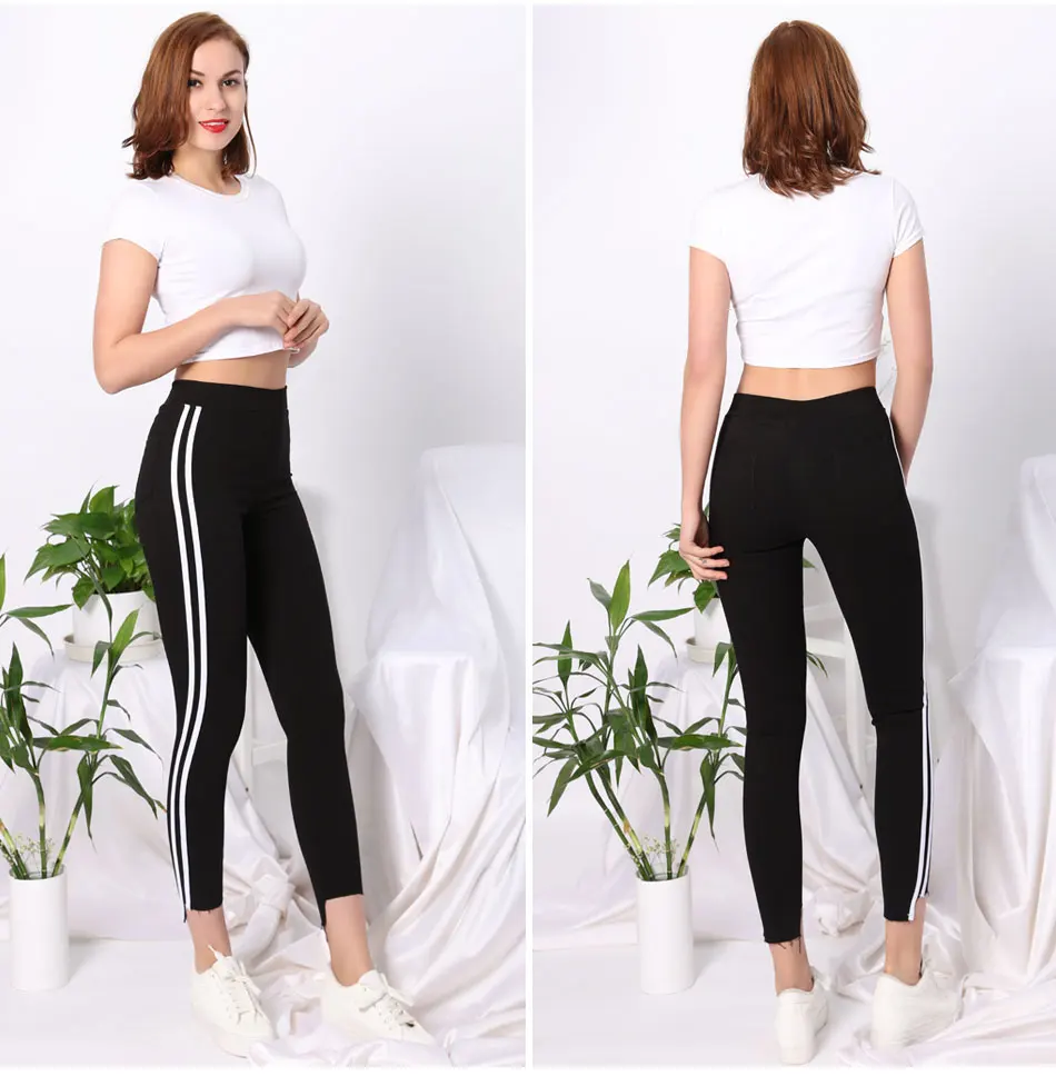 Slim Leggings Women Fitness Plus Size Woman Legins White Striped Skinny Pant High Waist Elastic Ankle Length Sexy Legging Femme
