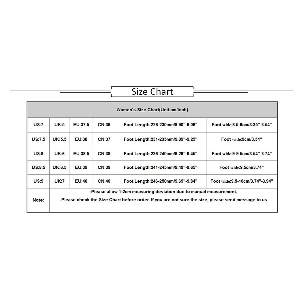 | US:7 | UK:5 | EU:37.5 | CN:36 | Foot Length:226-230mm/8.90″-9.06″ | Foot wide:8.5-9cm/3.35″-3.54″ |