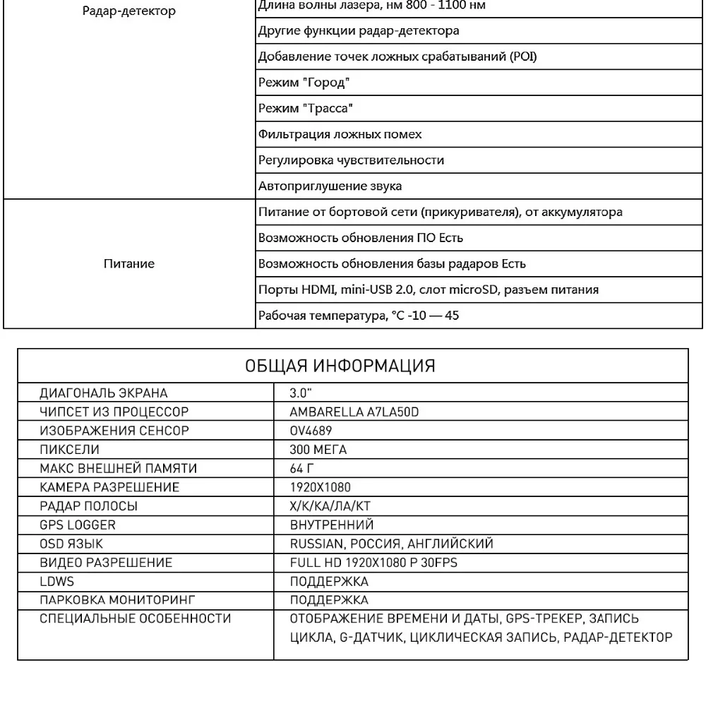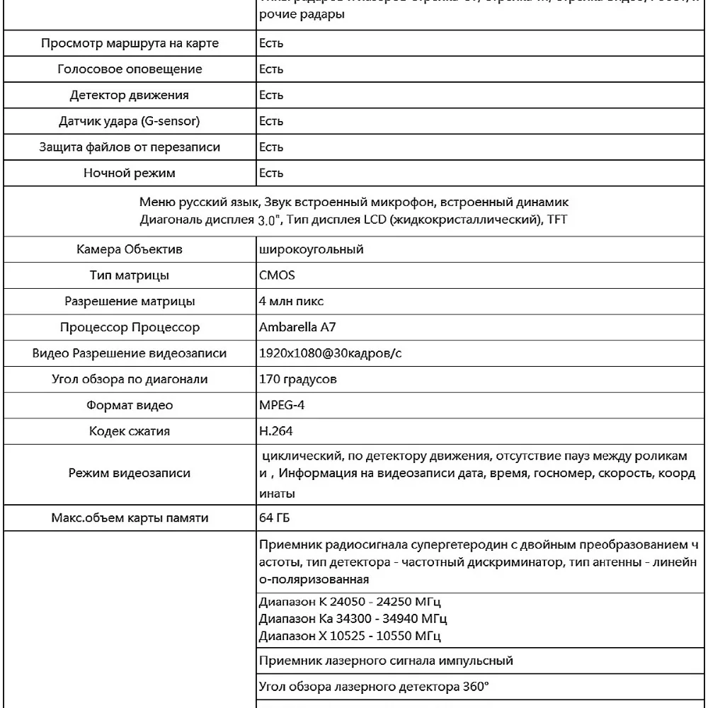 Это устройство 3 в 1, включающее радар-детектор, автомобильный видеорегистратор и GPS. Оно создано для безопасного вождения и предотвращения получения штрафов. Благодаря Ambarella A7LA50D и OmniVision OV4689, устройство обеспечивает сверхчеткие видео и изображения. Радар-детектор может определить практически все стандартные для России диапазоны, такие как X, K, Ka, La и CT. Более того, встроенная функция GPS может зафиксировать камеру на основе спутниковых и GPS данных. В результате устройство способно определить скорость транспортного средства и среднюю скорость потока. Прежде всего, это хороший товар по разумной цене. Покупки у нас – лучший выбор!