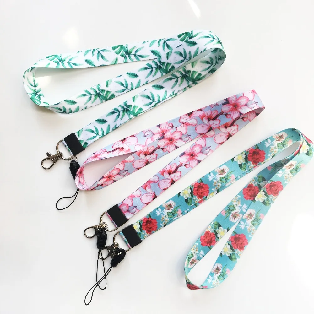 Small Fresh Leaves Neck Strap Lanyards for keys ID Card Gym Mobile Phone Straps USB badge holder DIY Hang Rope Lariat Lanyard