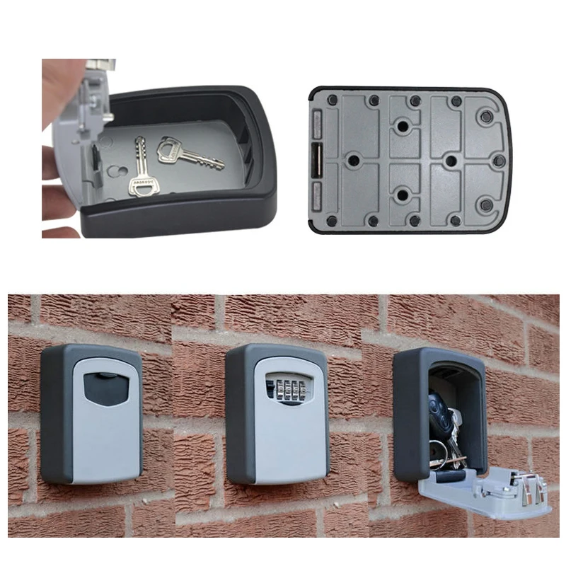 Small Metal Secret Safe Box Key Storage Organizer Boxes With 4 Digit Wall Mounted Combination Password Keys Hook Organizer Boxes