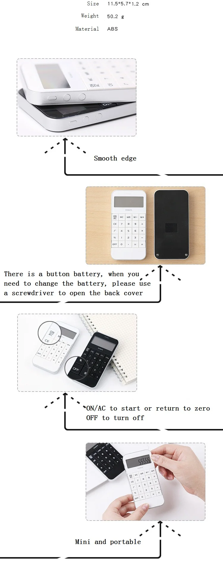 Smart Phone Style Arithmetic Calculator Coin Batteries Pocket Calculator Stationery Calculators Portable for School Meeting