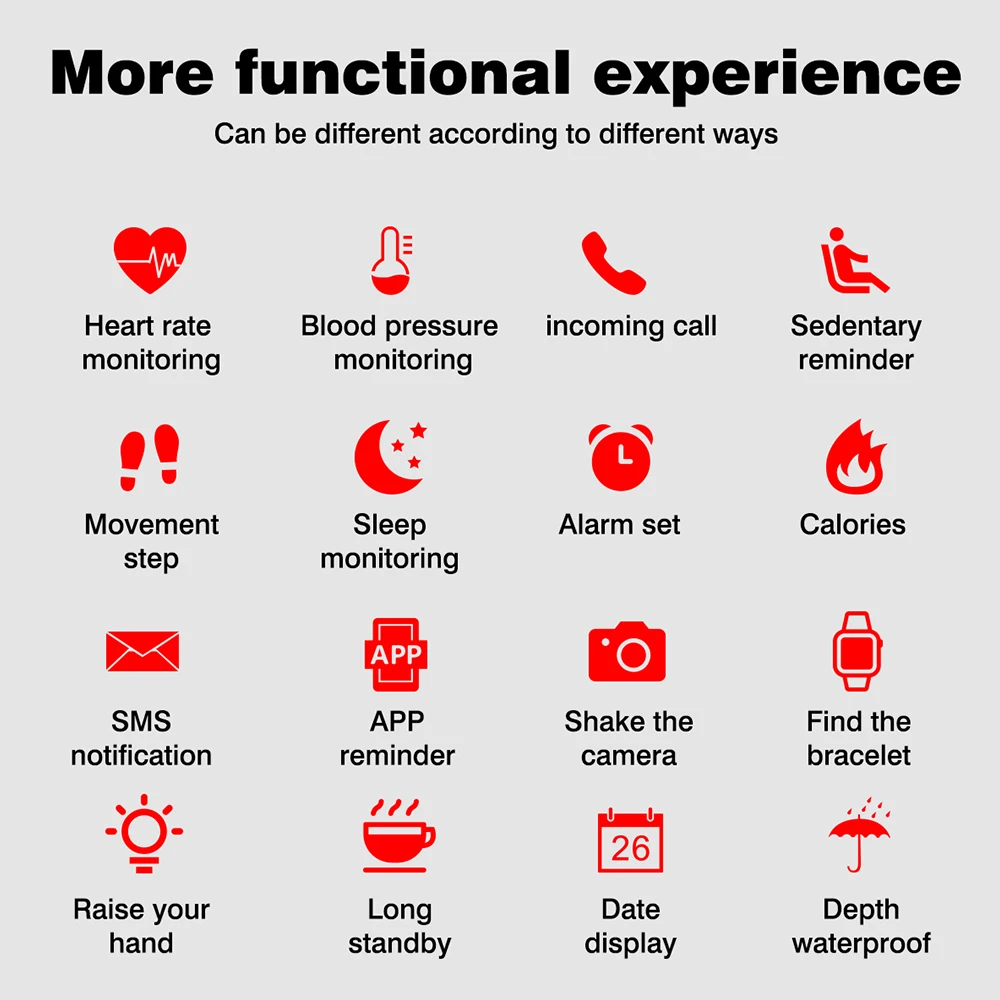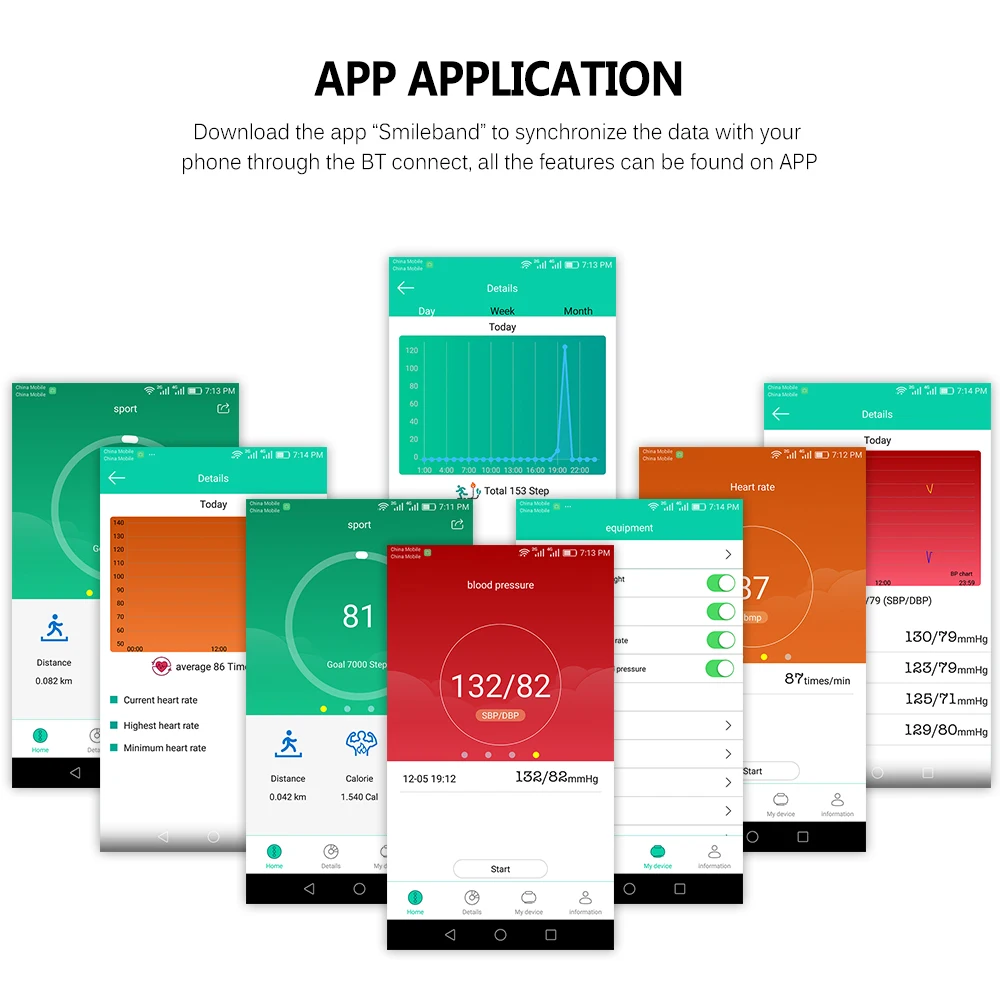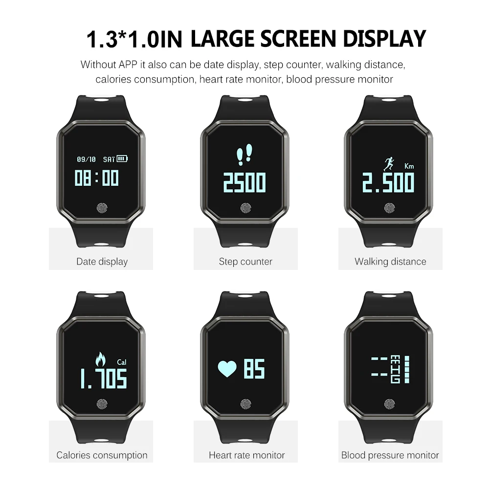 Display the present date and record your steps, walking distance and calories consumption, monitor your heart rate, blood pressure.