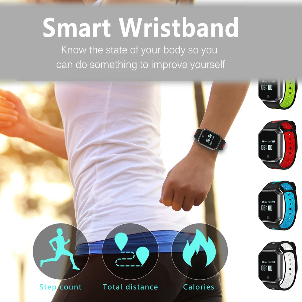 Smart Wristband Heart Rate Monitor Fitness Workout Distance Tracker Smart Bracelet Walking Step Calories Counter Sensor Watch