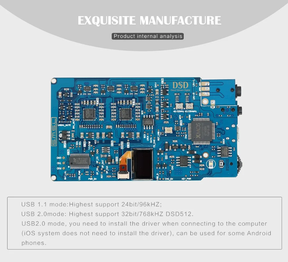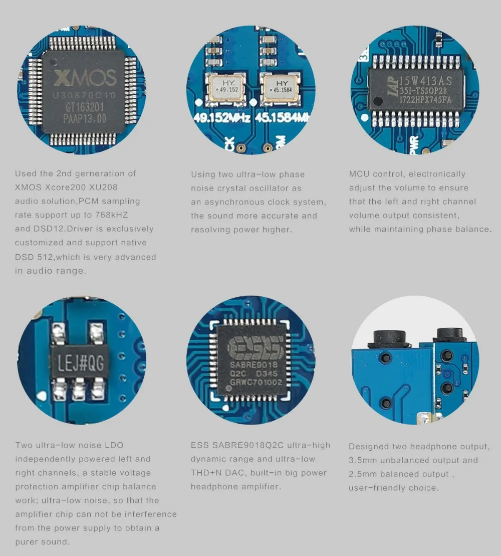 • DAC chips uses SABRE9018Q2C produced by ESS company in USA;