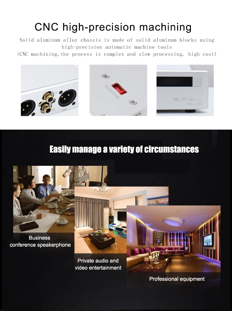 - 2nd gerneration of XMOS USB audio solution xCore200, PCM sampling rate supported up to 32bit/768kHz and DSD up to DSD512.