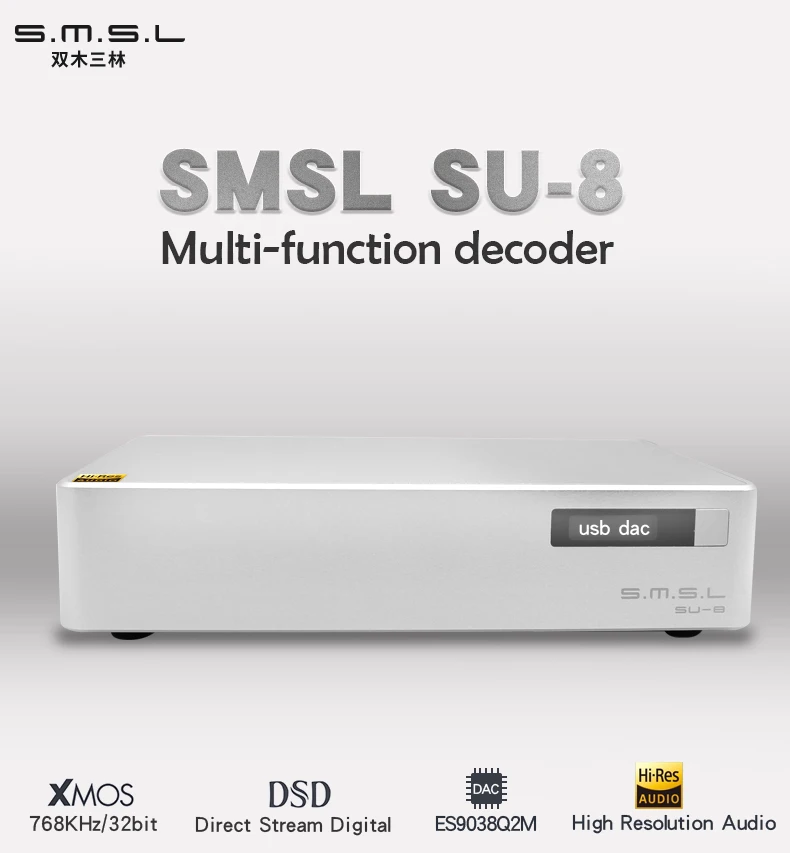SMSL SU-8 ES9038Q2M*2 32bit/768kHz DSD512 DAC USB/Optical/Coaxial Decoder