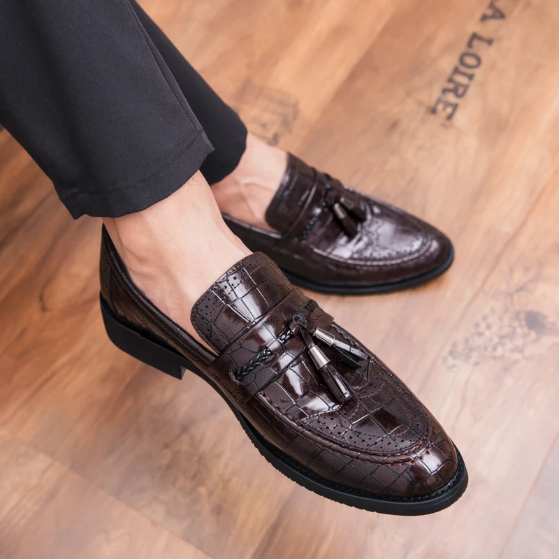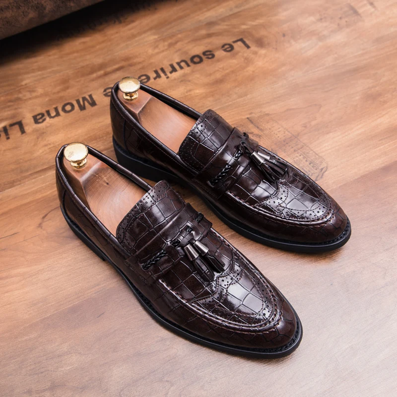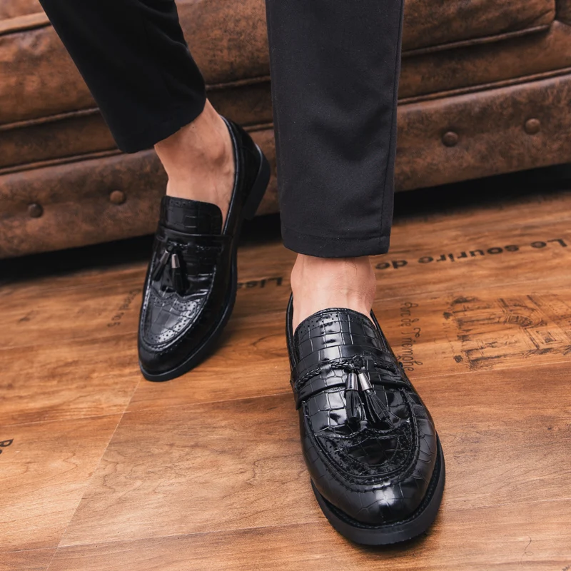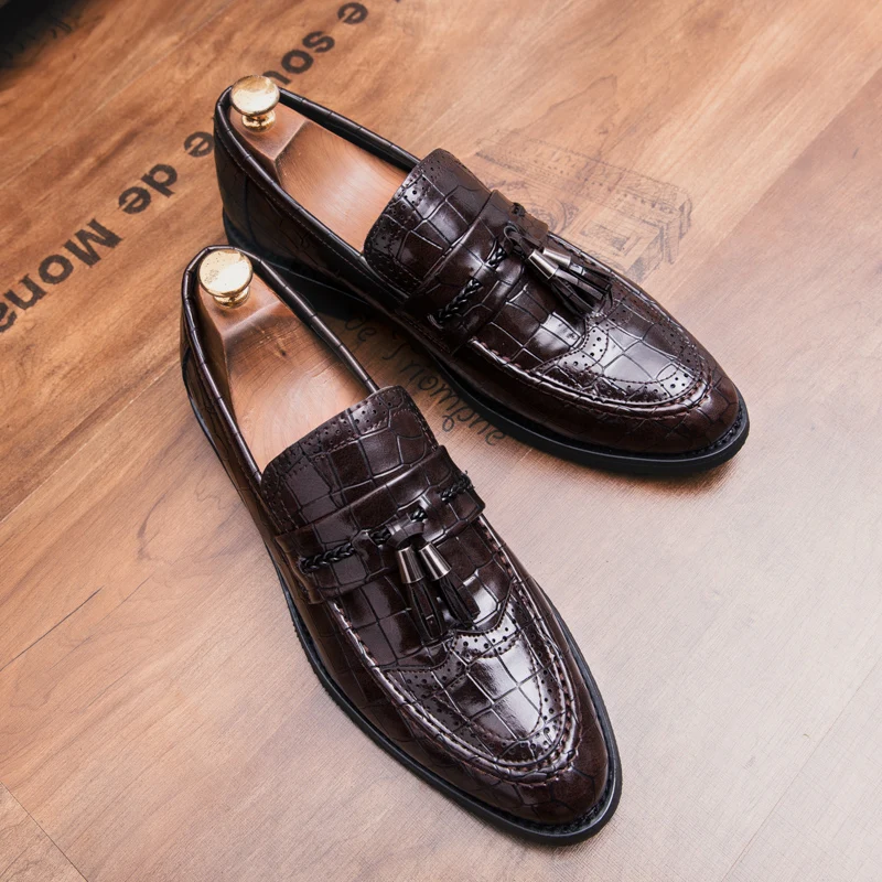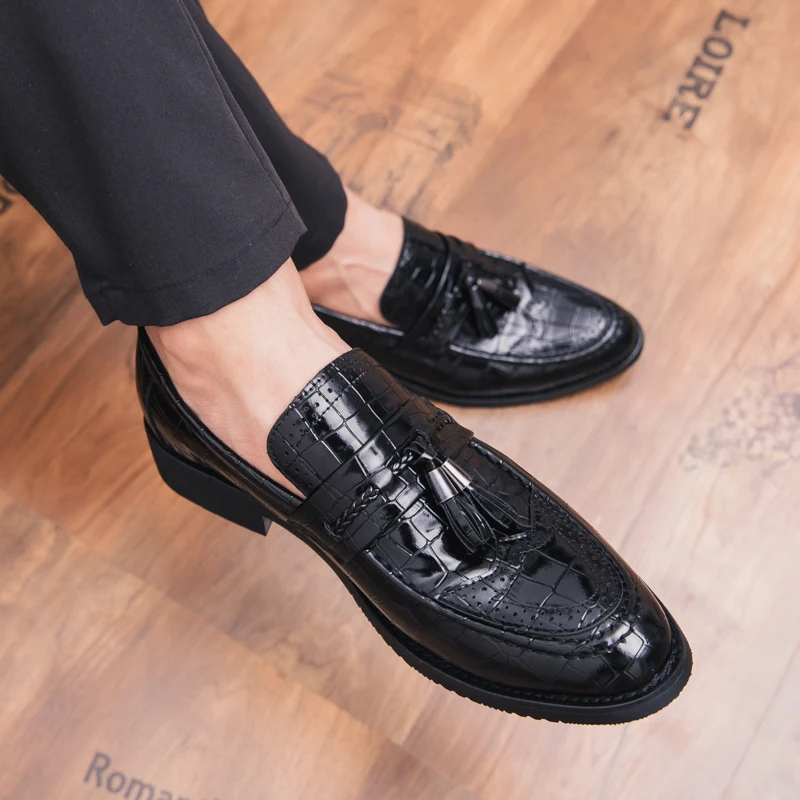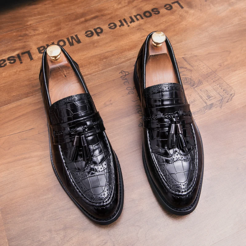 snake skin men patent leather shoes designer fish skin wedding male footwear italian tassel dress brogue oxford shoes for men