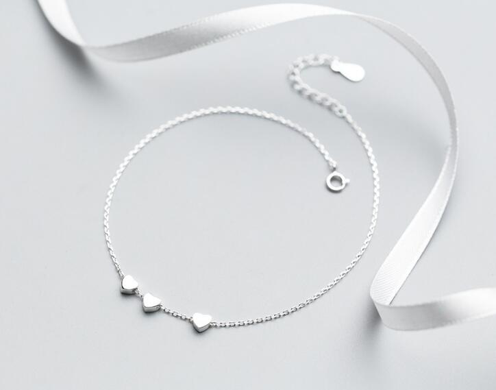Name: SO THIN Small 100% Real. 925 Sterling Silver Fine Jewelry 3-hearts Love Anklet Bracelet GTLS638
