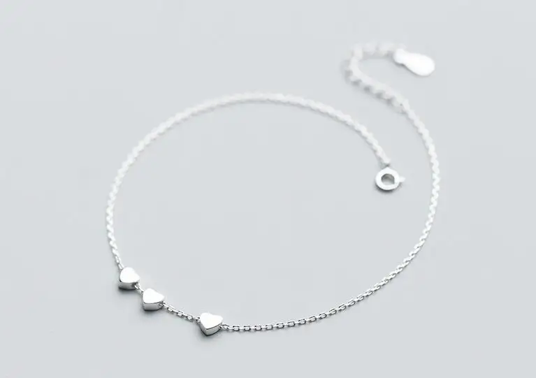 Name: SO THIN Small 100% Real. 925 Sterling Silver Fine Jewelry 3-hearts Love Anklet Bracelet GTLS638