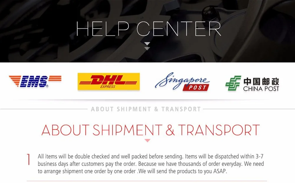 Packages from our warehouse in China will be shipped by ePacket or EMS depending on the weight and size of the product. Packages shipped from our US warehouse are shipped through USPS.