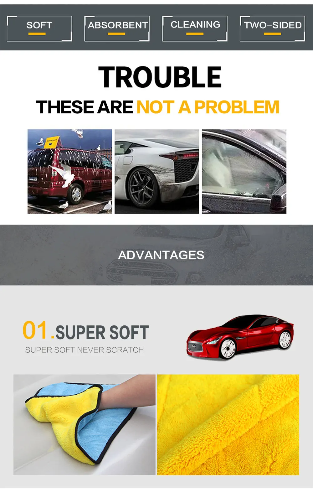 Soft Microfiber Towel for Car Cleaning Washing Clean Cloth Car Care Microfibre Wax Polishing Detailing Towels 40x30cm