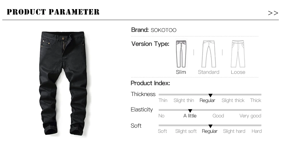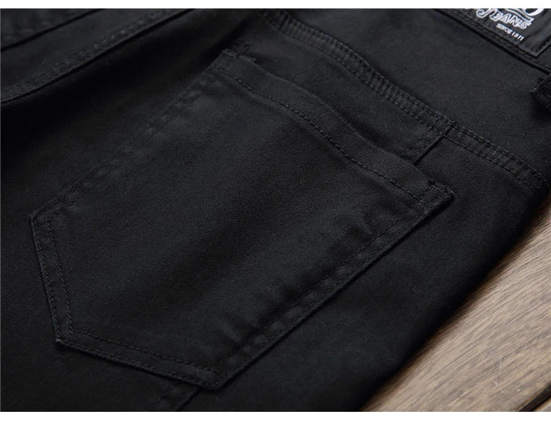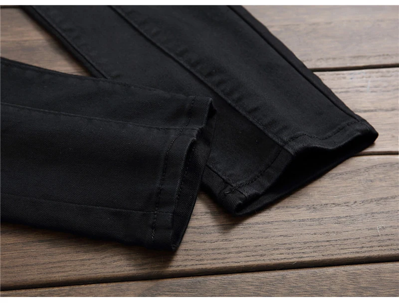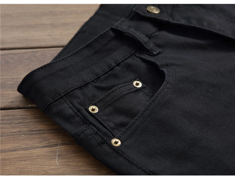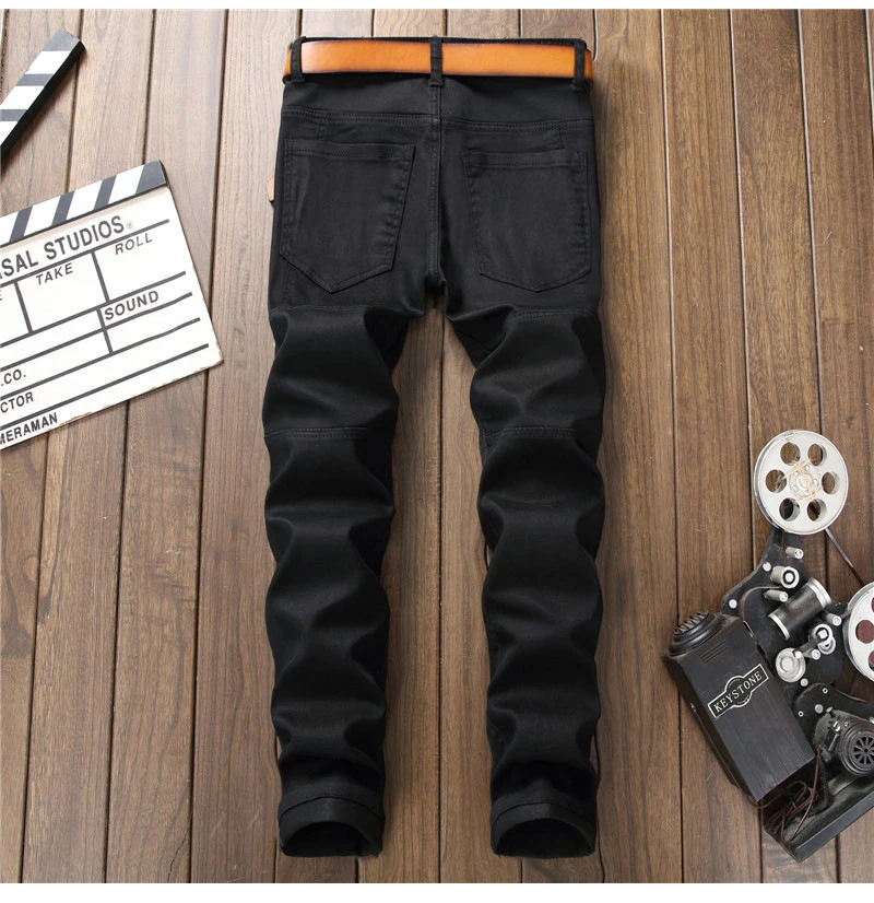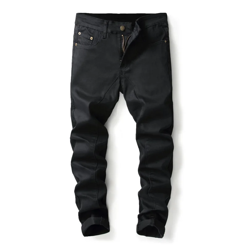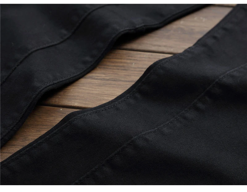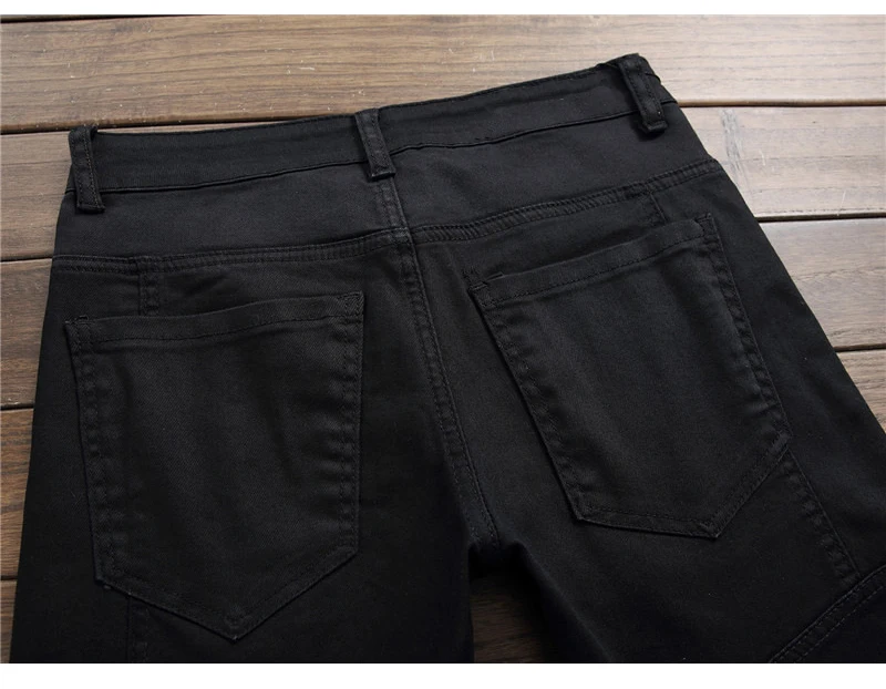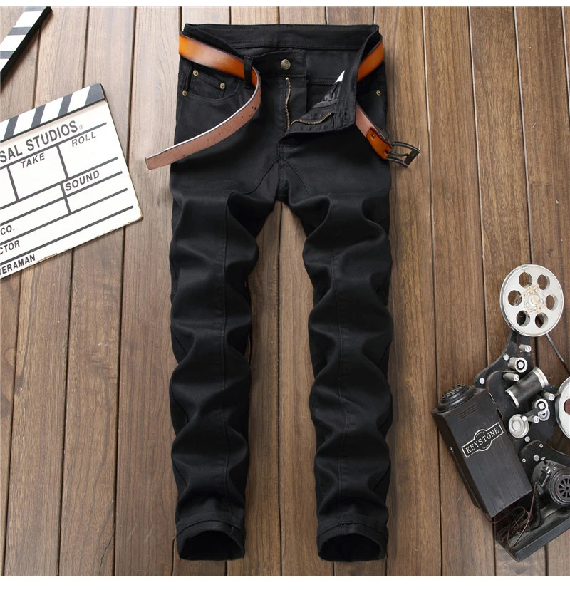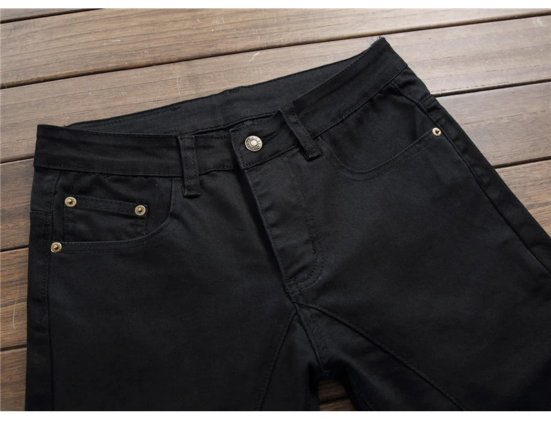 Sokotoo Men’s plain black all match slim skinny denim jeans Patchwork straight pants