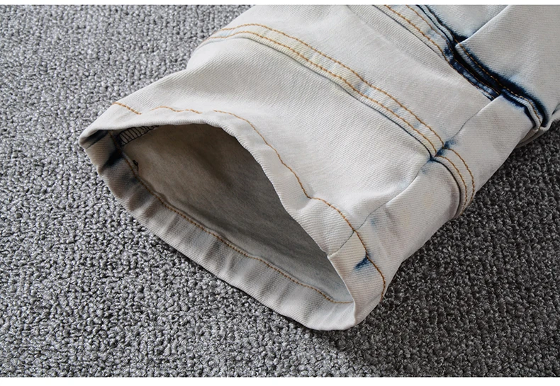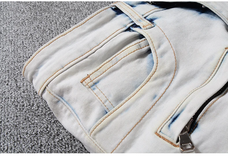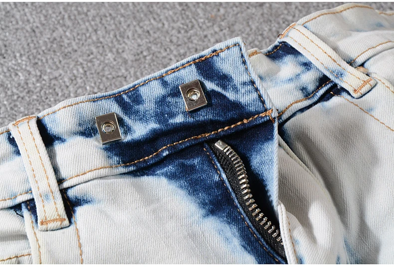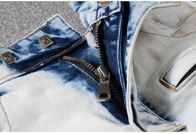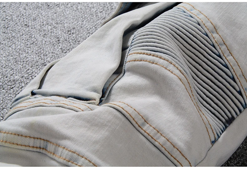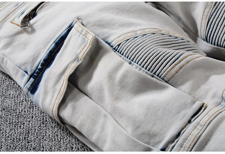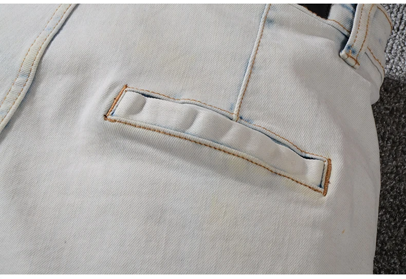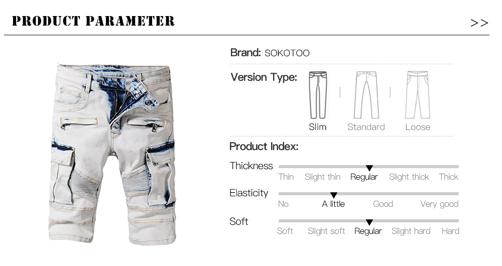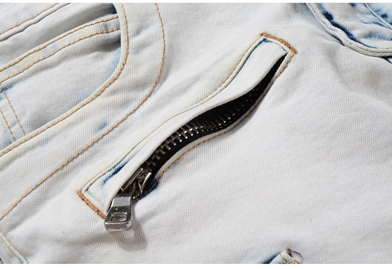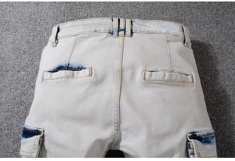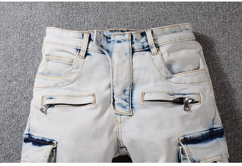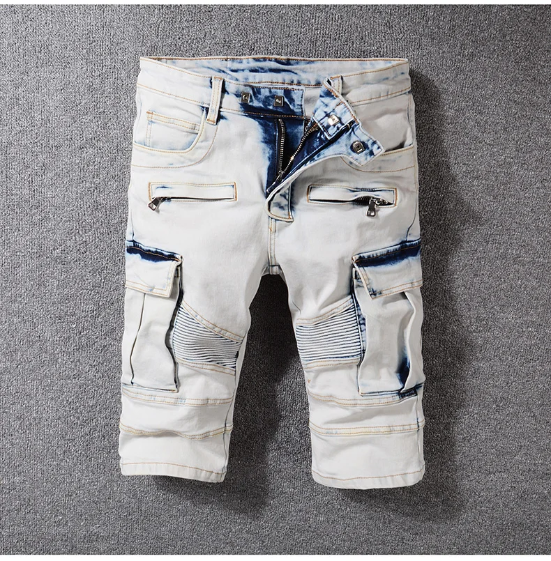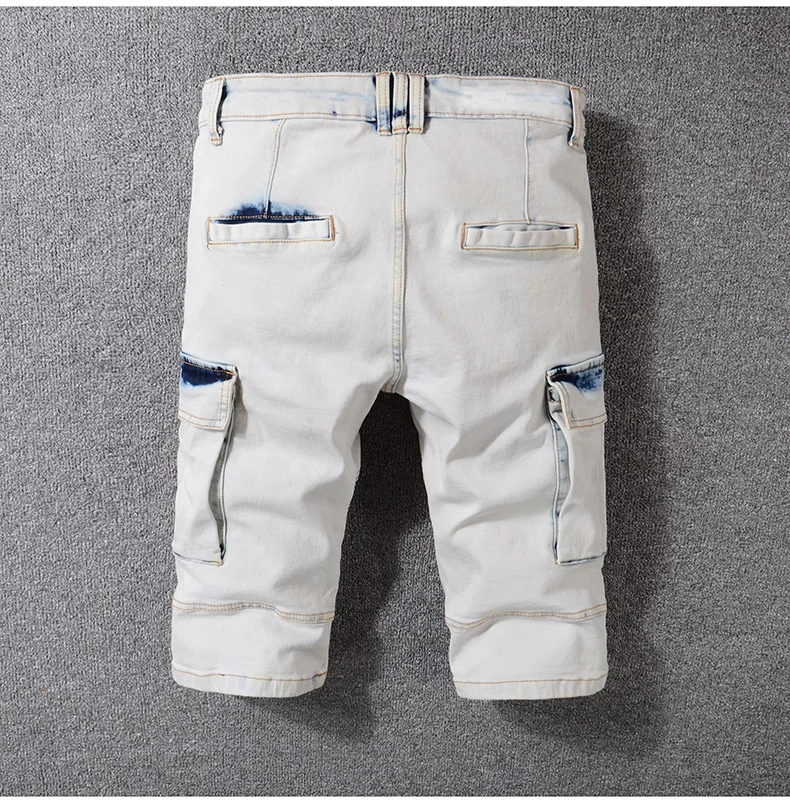 Sokotoo Men’s summer pale blue pockets cargo biker shorts for moto Plus size knee length stretch denim slim jeans