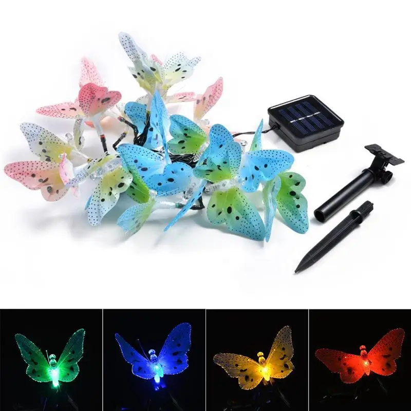 Solar Power Butterfly Lights Garden Outdoor Lights Waterproof Multi-Color Fiber Optic Decorative Lights For Garden Lawn