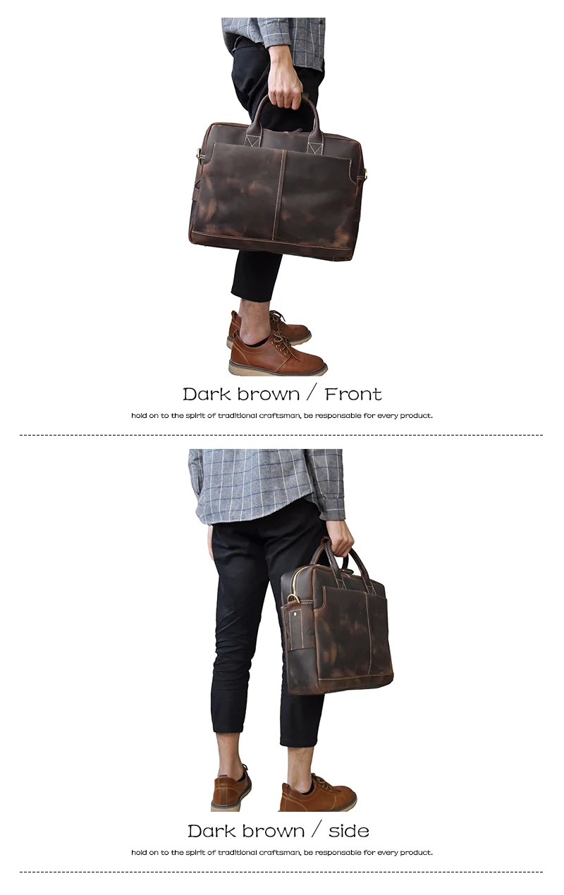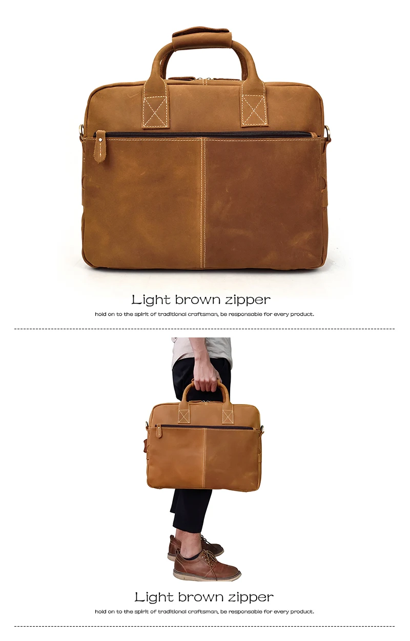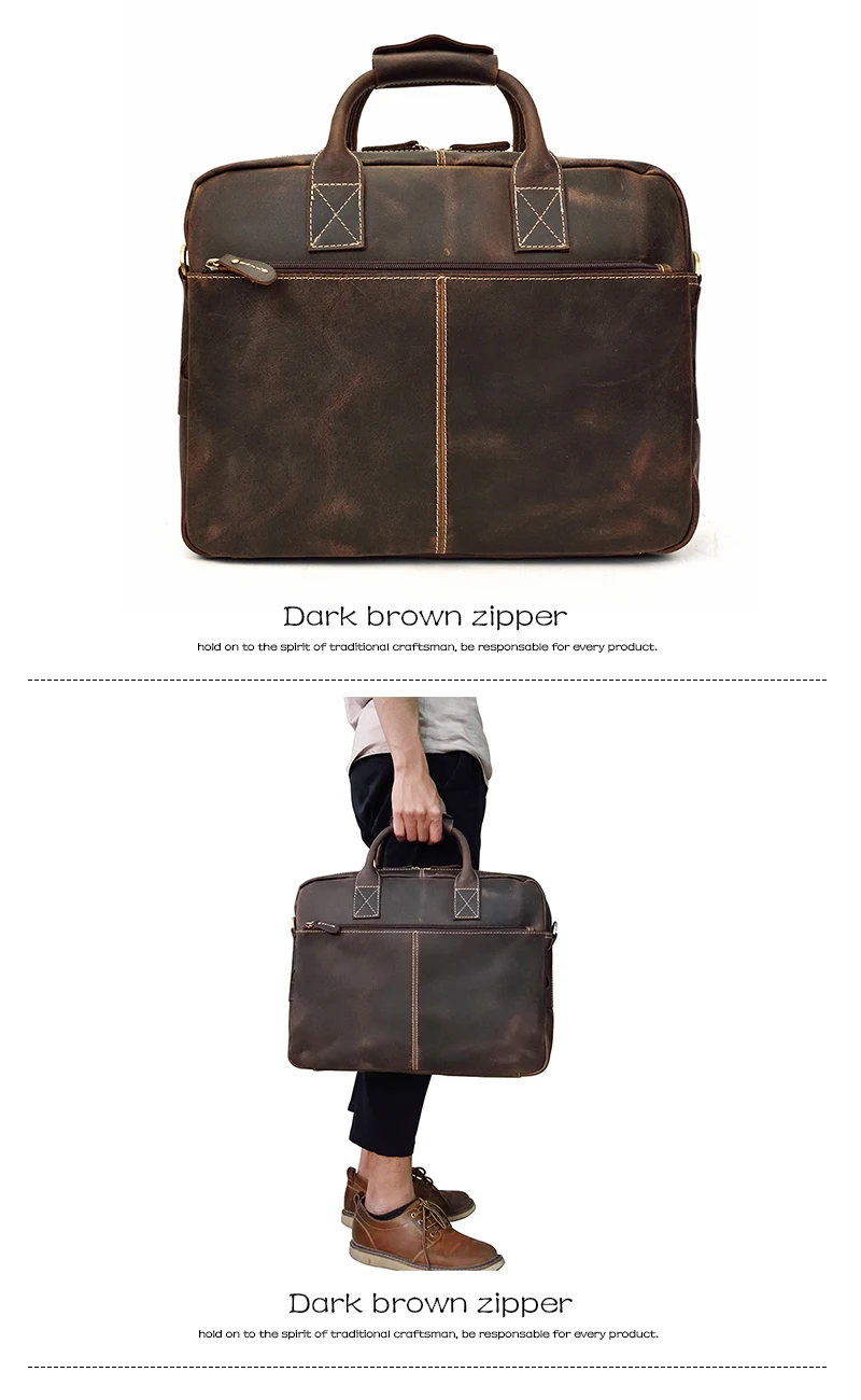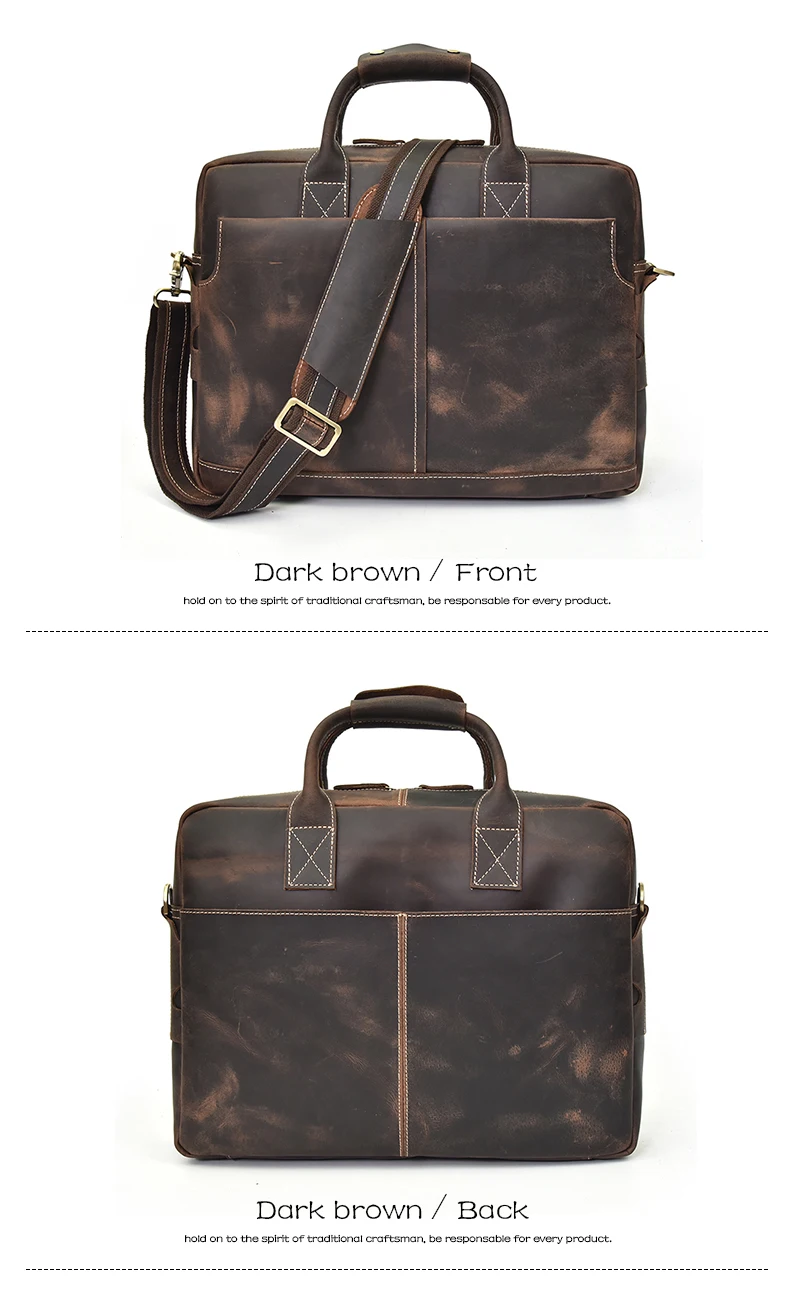 Solid Classical Crazy Horse Leather Men Briefcases Work Tote Cowhide Shoulder Bag for 15″ Laptop Male Office Business Bag