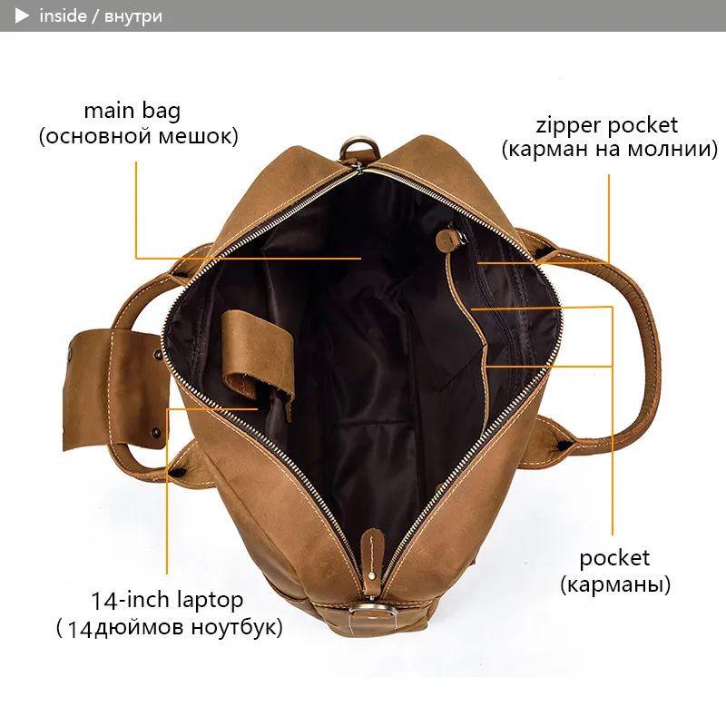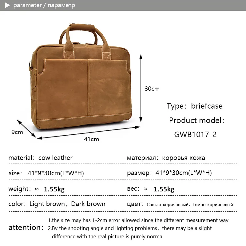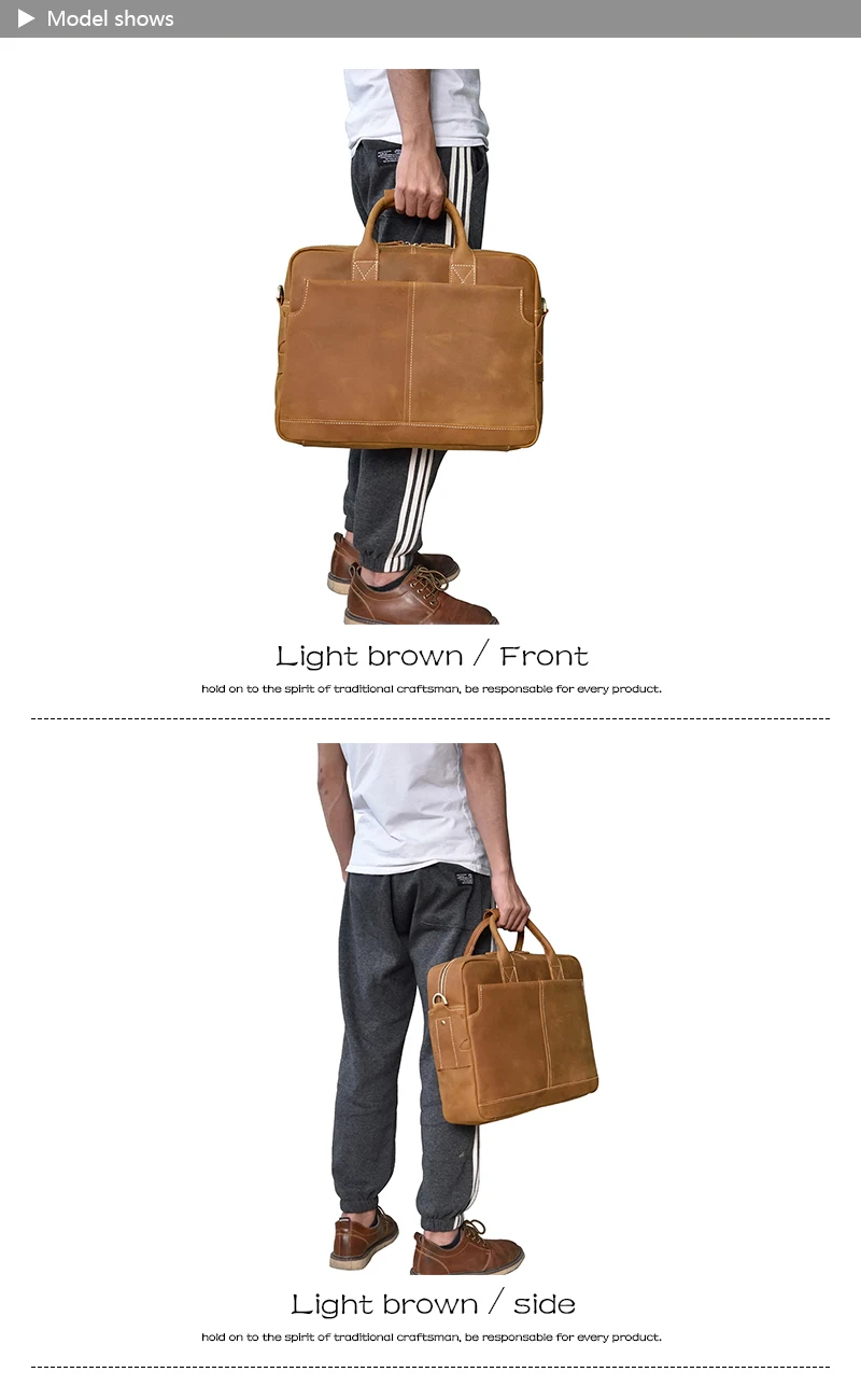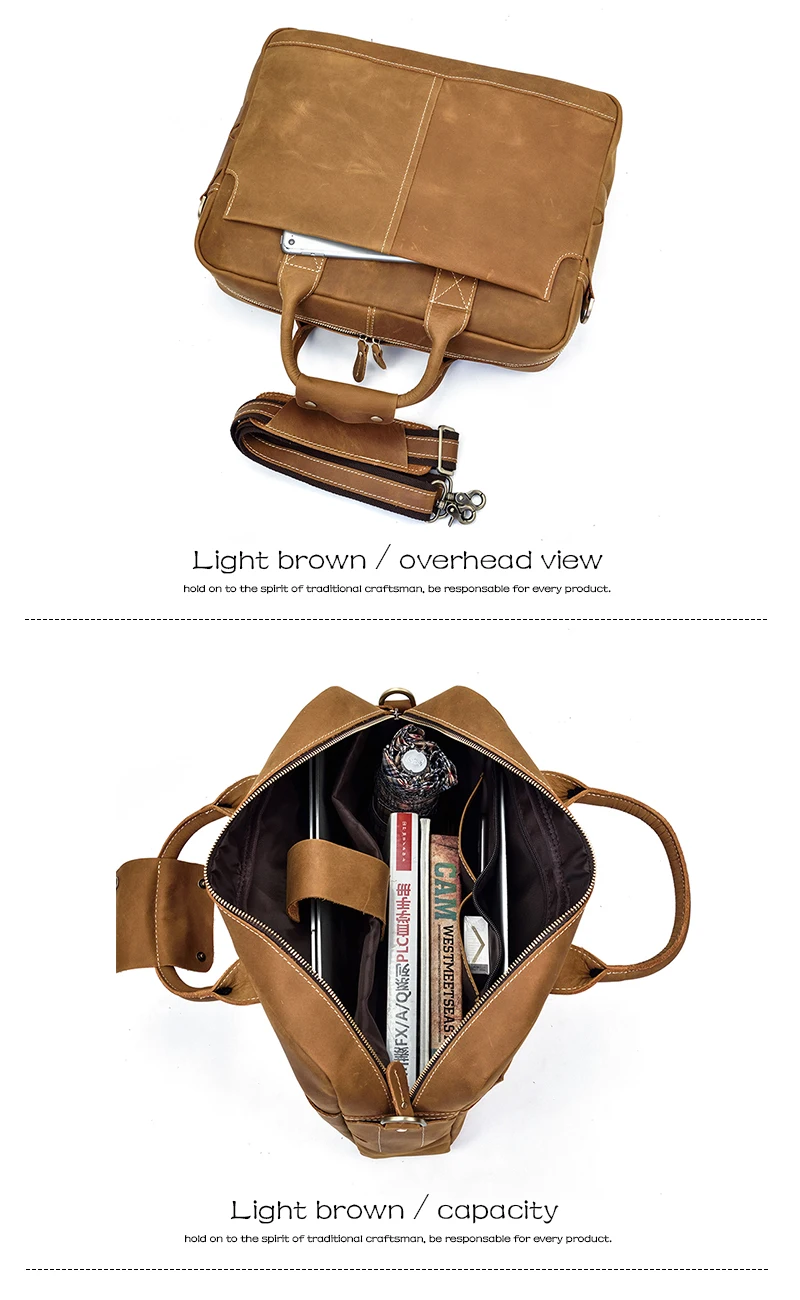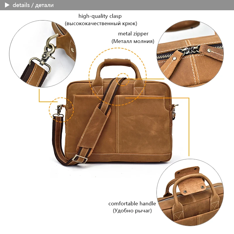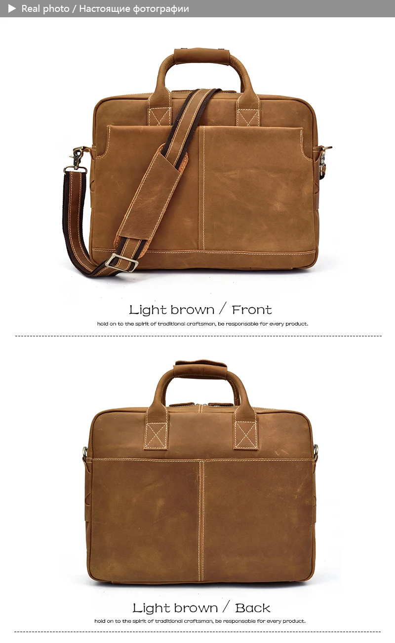 Solid Classical Crazy Horse Leather Men Briefcases Work Tote Cowhide Shoulder Bag for 15″ Laptop Male Office Business Bag