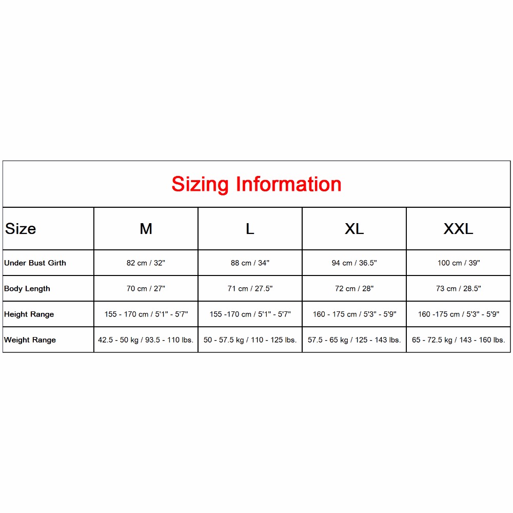 | Under Bust Girth | 82 cm / 32″ | 88 cm / 34″ | 94 cm /36.5″ | 100 cm / 39″ |