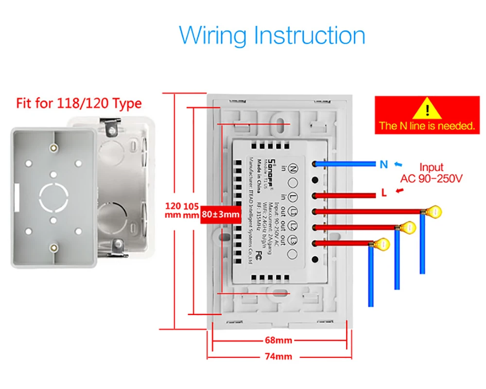 NOTE 2: The T1 US 1-3 gang switches support 315MHz RF, not 433MHz.