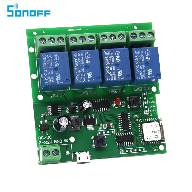 SONOFF USB 5V Or DC 7V-32V DIY 4 Channel Jog Inching Self-locking WIFI Wireless Smart Home Switch APP Remote Control