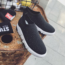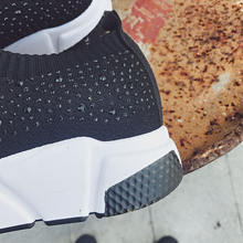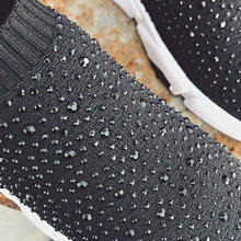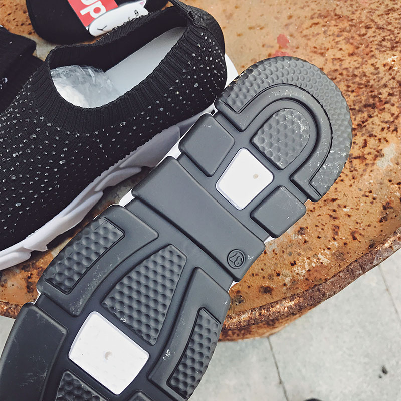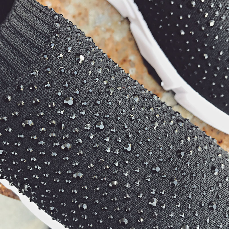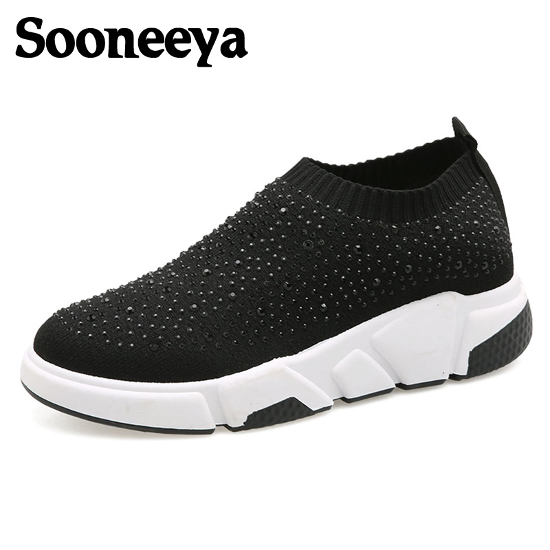 Sooneeya Fashion Bling Crystal Decoration Women Flats Stretch Casual Shoes Sock Sneakers Female Slip On Elastic Shoes Woman Tenis Loafers