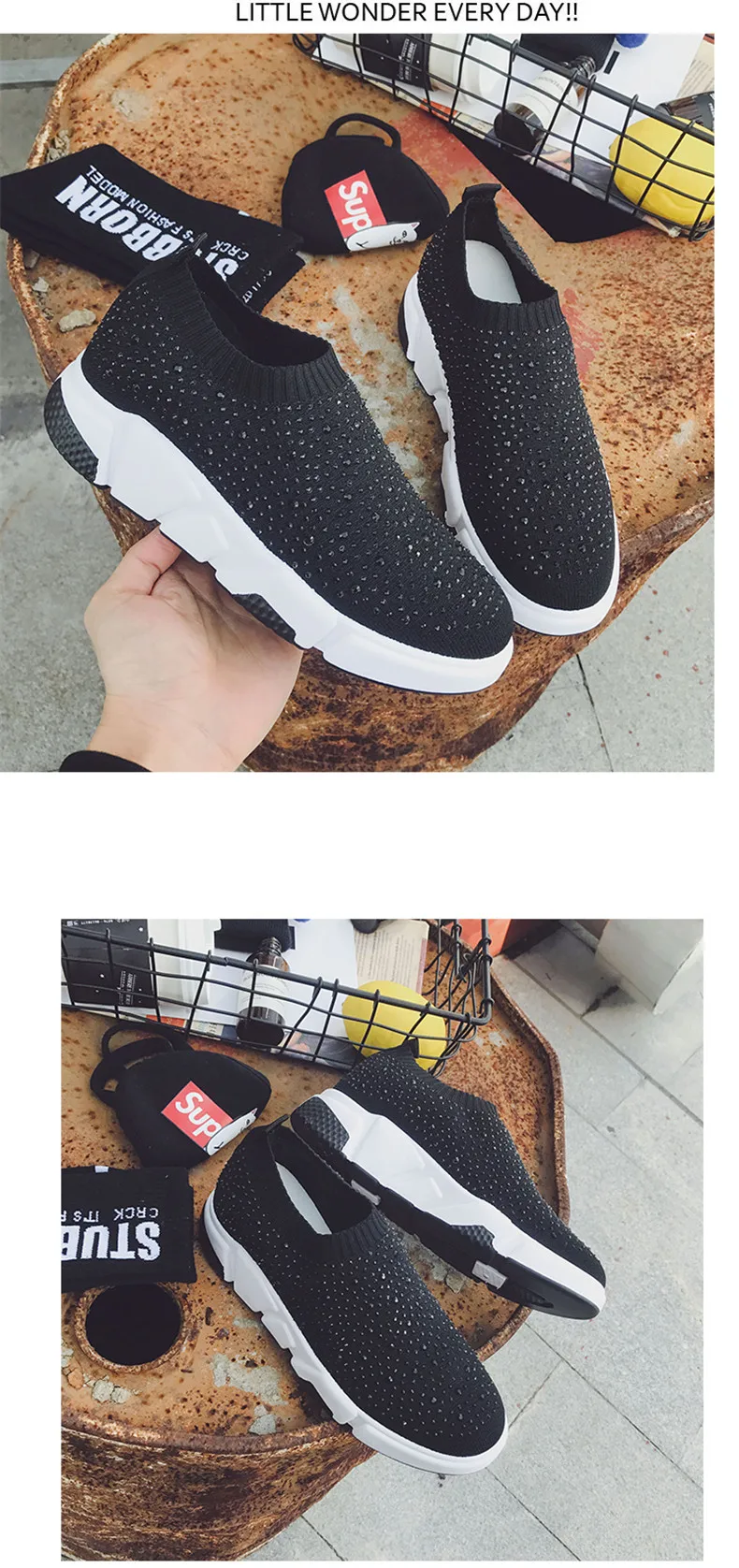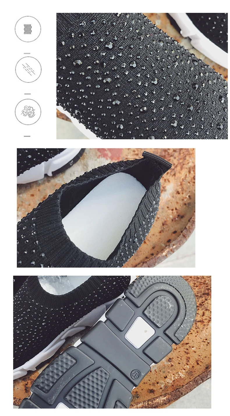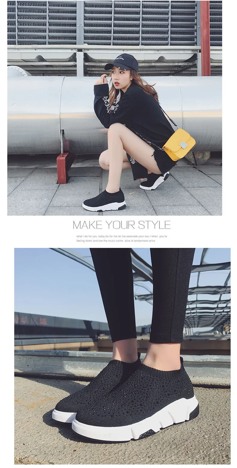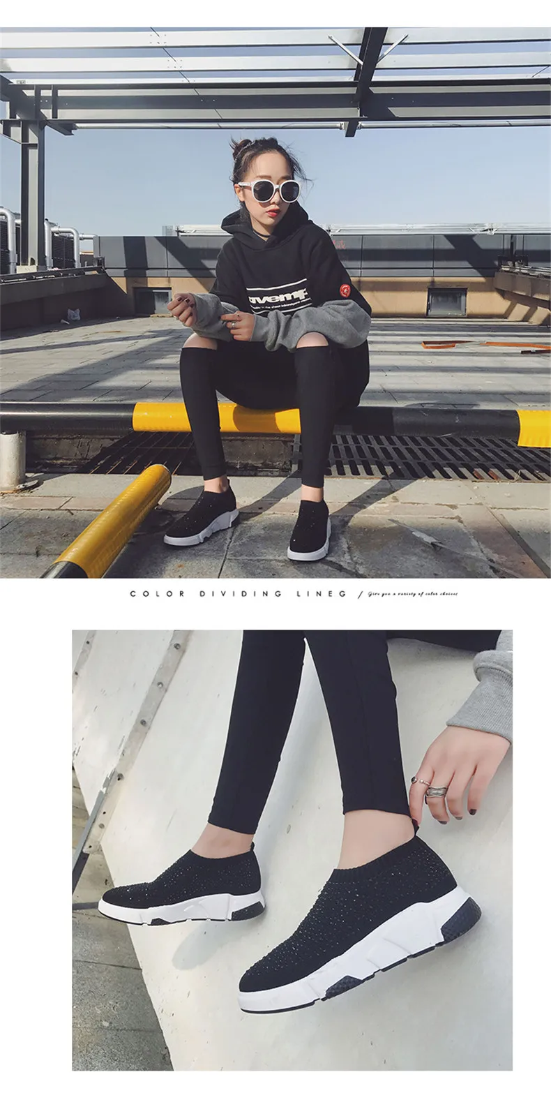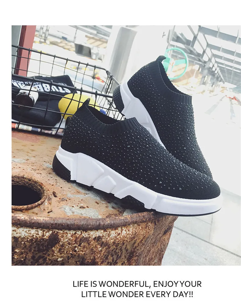 Sooneeya Fashion Bling Crystal Decoration Women Flats Stretch Casual Shoes Sock Sneakers Female Slip On Elastic Shoes Woman Tenis Loafers