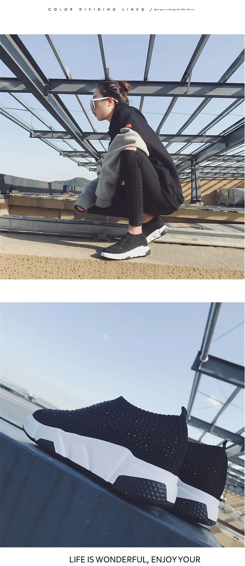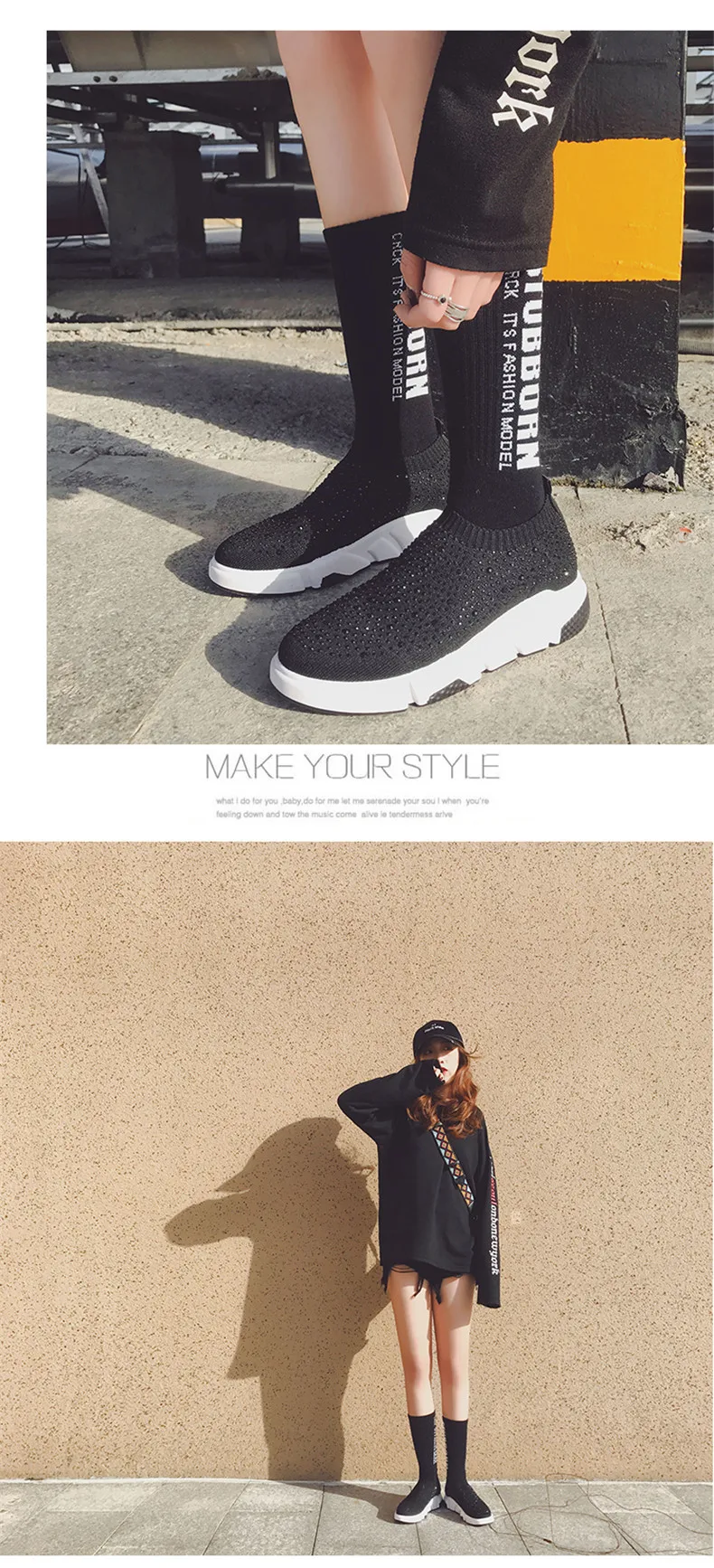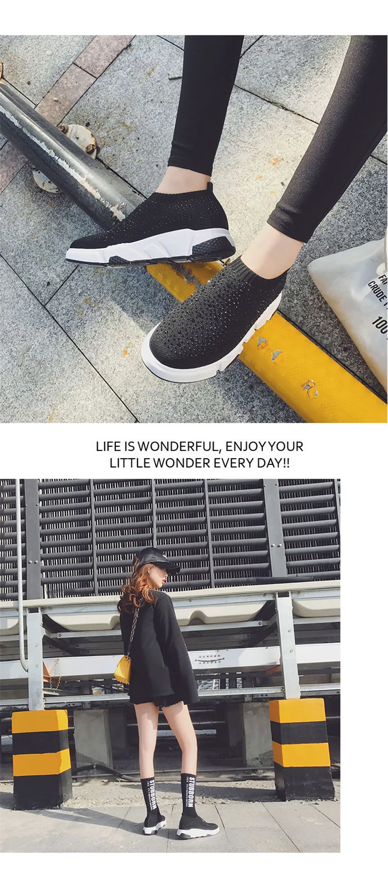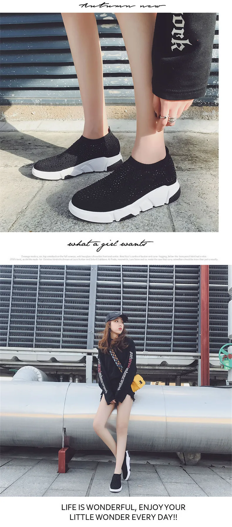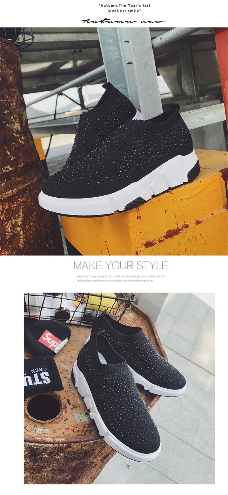 Sooneeya Fashion Bling Crystal Decoration Women Flats Stretch Casual Shoes Sock Sneakers Female Slip On Elastic Shoes Woman Tenis Loafers