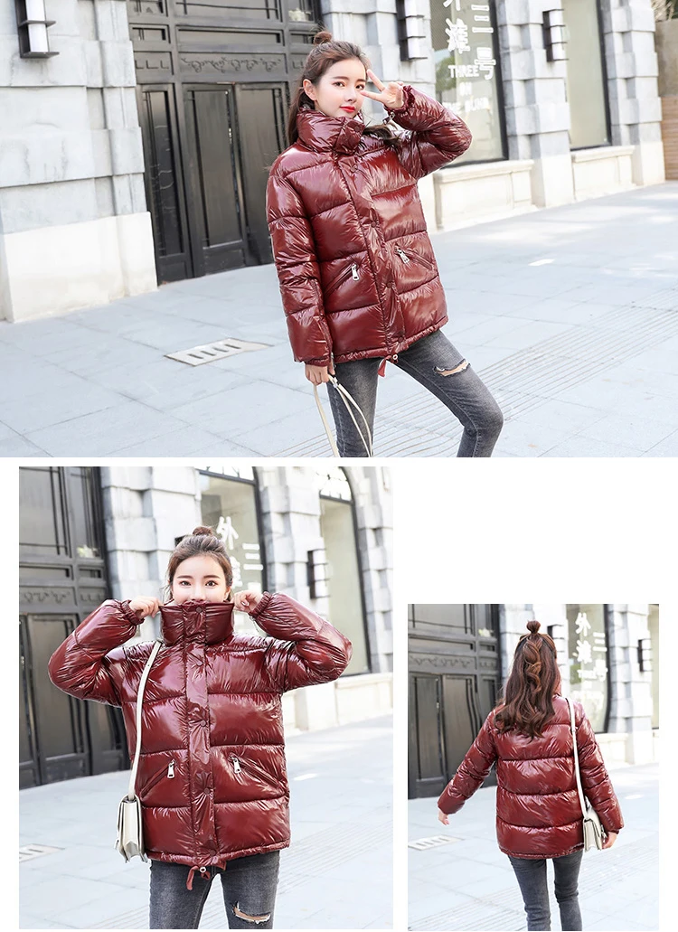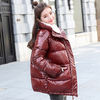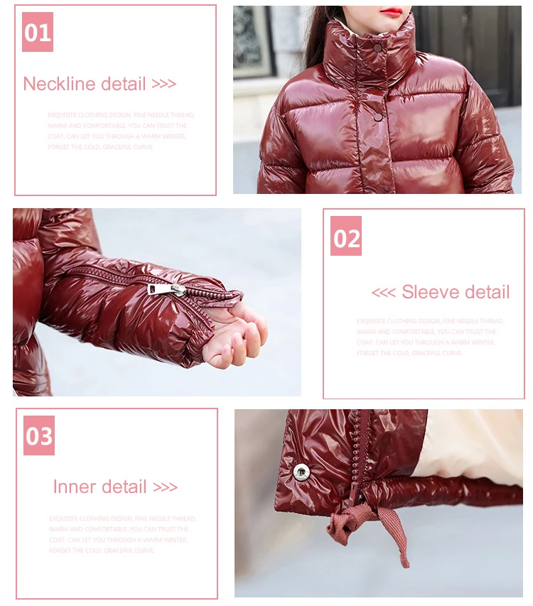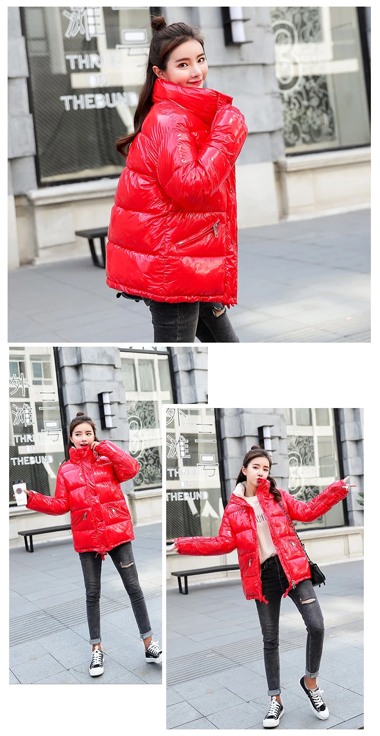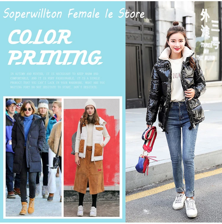 Soperwillton Women Down Jacket No Hat Duck Down Jacket Long Sleeve Winter Warm Pocket Coat Parka Female Bright Black Red Outwear