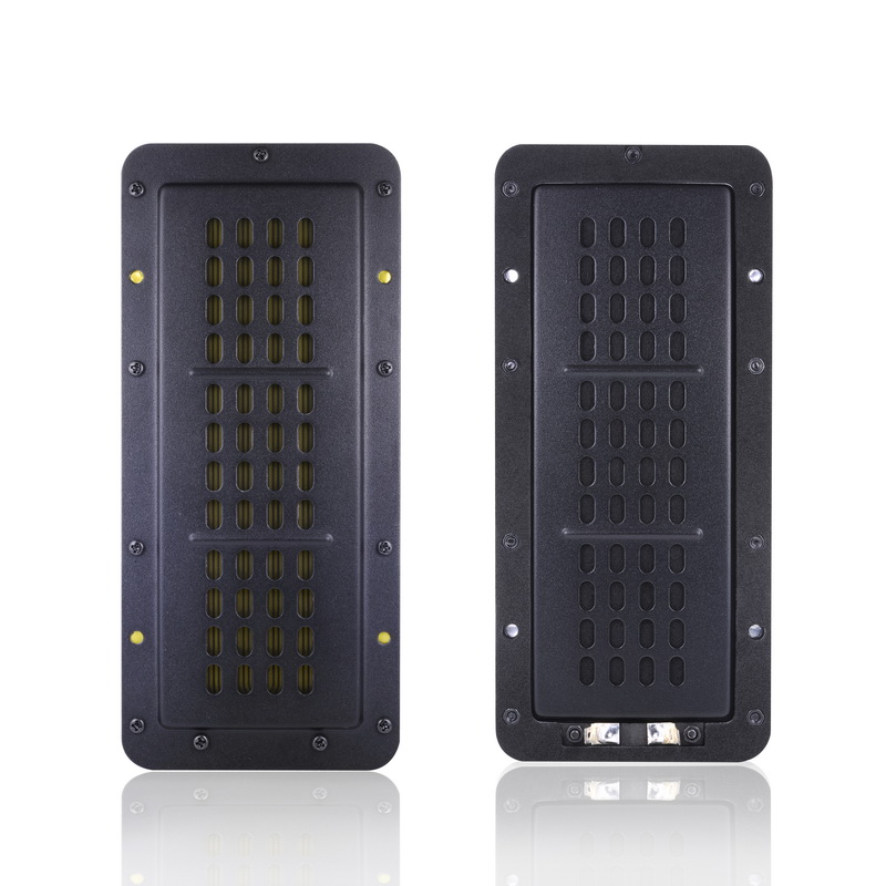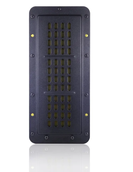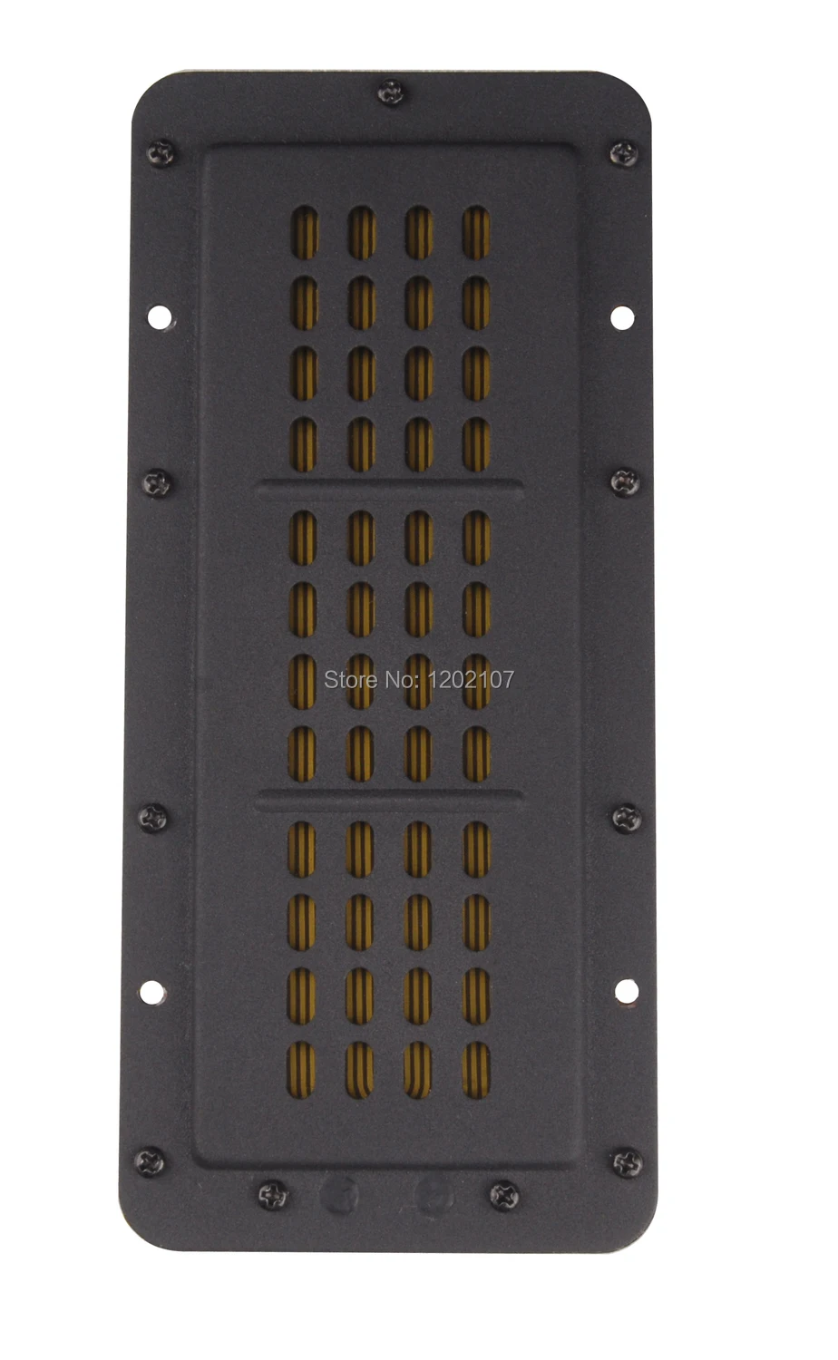 A ribbon tweeter uses a very thin diaphragm (often of aluminum, or perhaps metalized plastic film) that supports a planar coil frequently made by deposition of aluminium vapor, suspended in a powerful magnetic field (typically provided by neodymium magnets) to reproduce high frequencies. The development of ribbon tweeters has more or less followed the development of ribbon microphones. The ribbon is of very lightweight material and so capable of very high acceleration and extended high frequency response. Ribbons have traditionally been incapable of high output (large magnet gaps leading to poor magnetic coupling is the main reason). But higher power versions of ribbon tweeters are becoming common in large-scale sound reinforcement line array systems, which can serve audiences of thousands. They are attractive in these applications since nearly all ribbon tweeters inherently exhibit useful directional properties, with very wide horizontal dispersion (coverage) and very tight vertical dispersion. These drivers can easily be stacked vertically, building a high frequency line array that produces high sound pressure levels much farther away from the speaker locations than do conventional tweeters.
