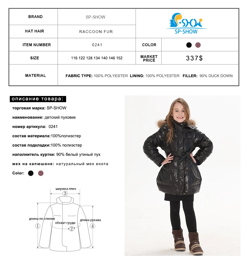 SP-SHOW Spring & Autumn New children’s clothing girls duck down long coat
