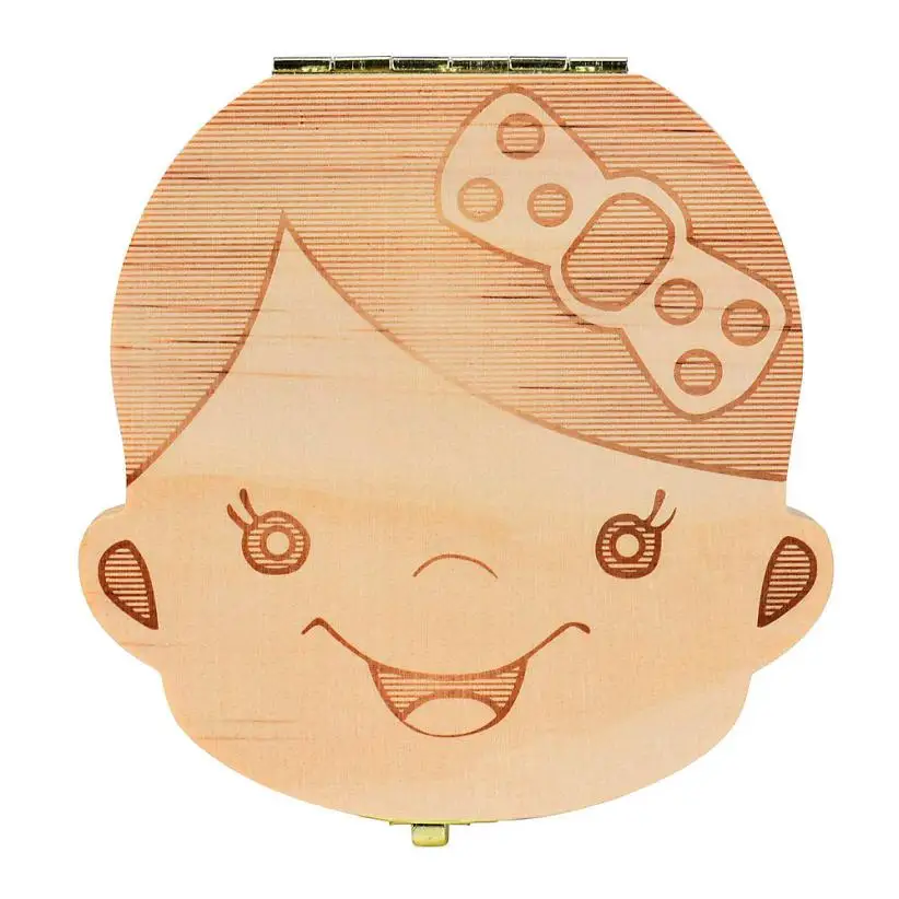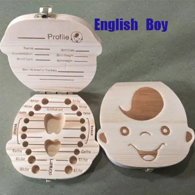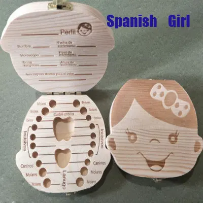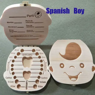 Spanish/English Wooden Tooth Box Baby Kids Organizer Storage Box Baby Milk Collect Gift Save Cord Lanugo Umbilical Case